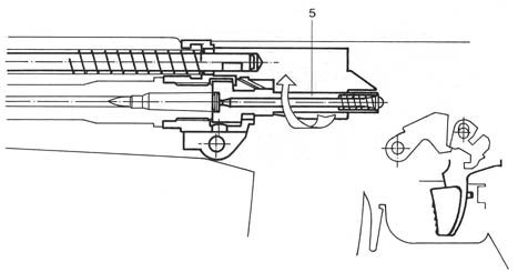 | 机框带动机体回转,机头的闭锁凸笋转动开锁 |