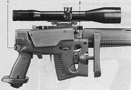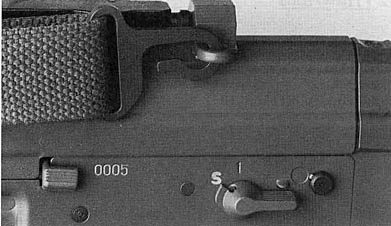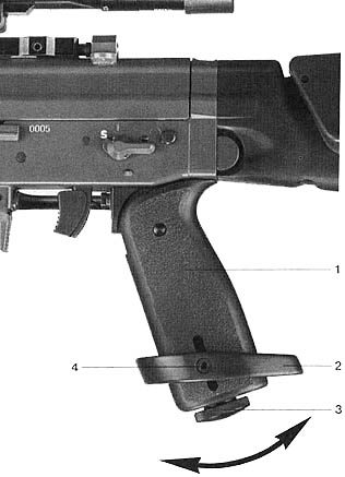 和SG550突击步枪一样,SG550狙击型的扳机护圈也可以向上翻起,方便戴上防寒手套后射击
