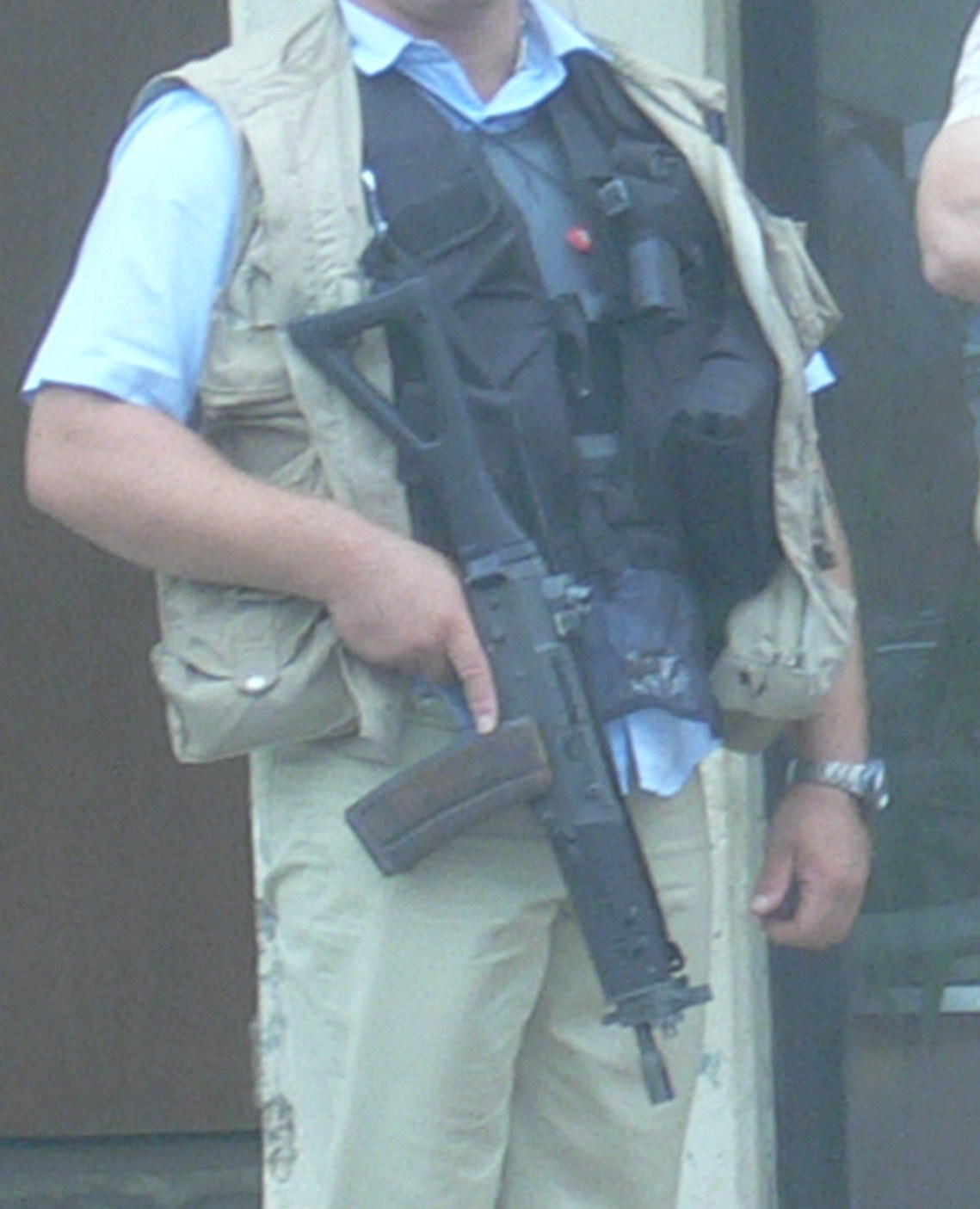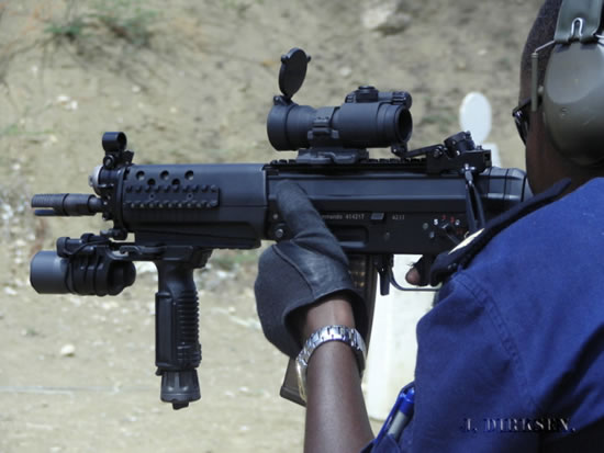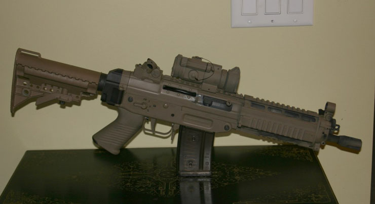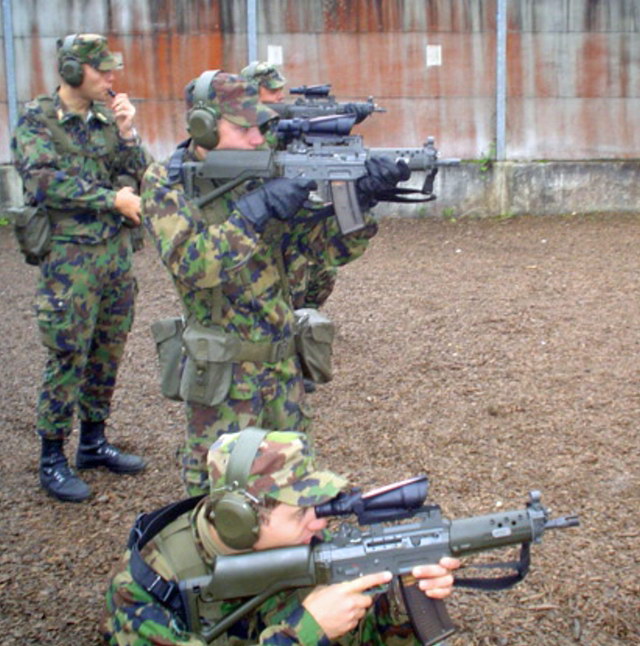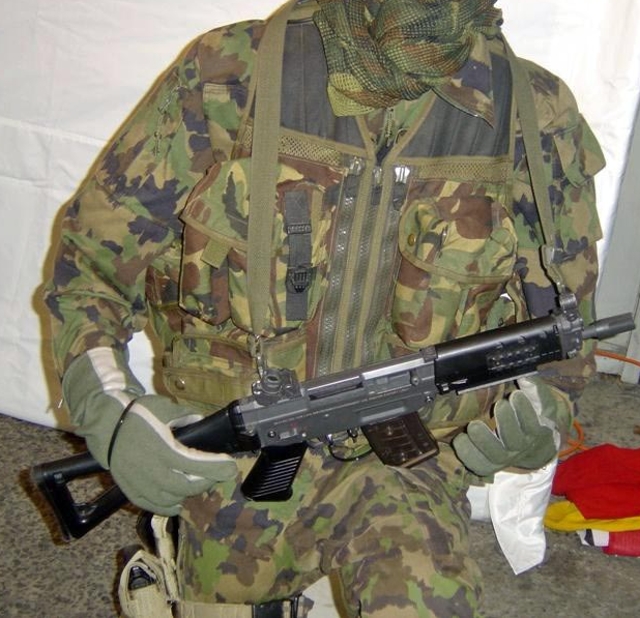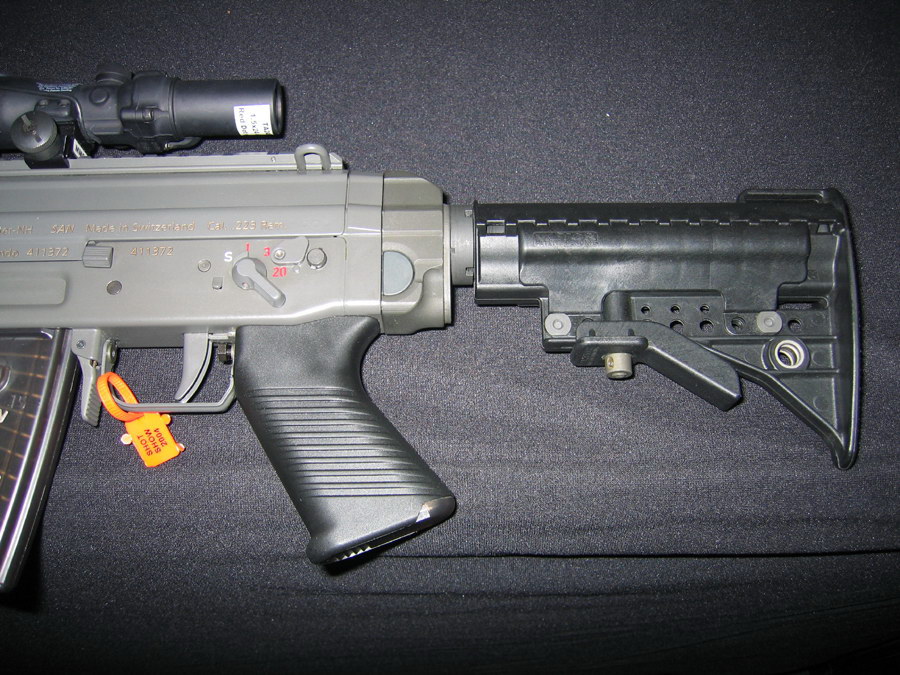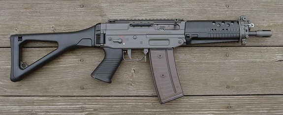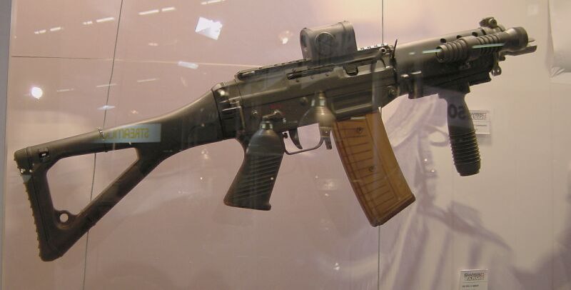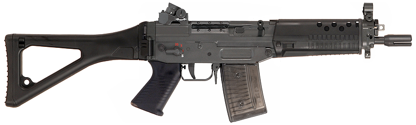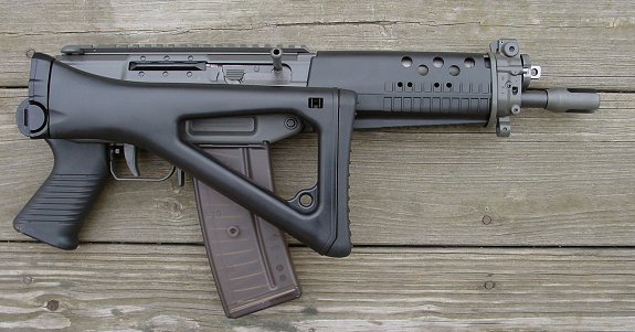 这一支BTR-80在瑞士拍摄的SG552其实并不是SIG生产的原枪,而是枪店老板用SG550的半自动型改装的,在瑞士,SG552也是不对民间销售的。