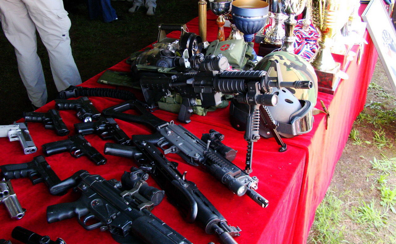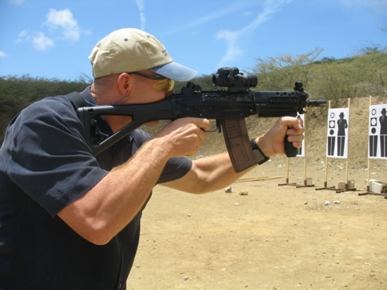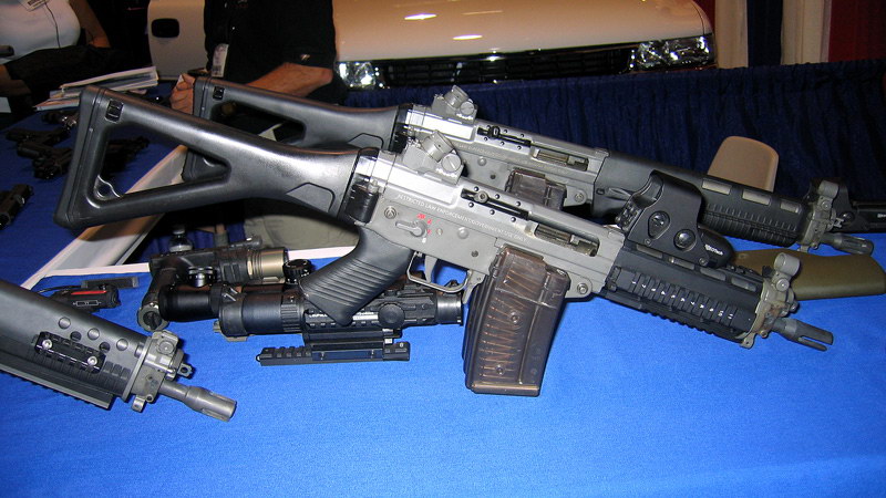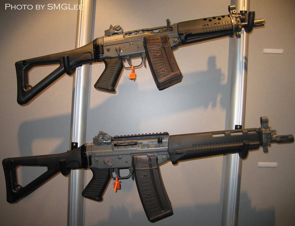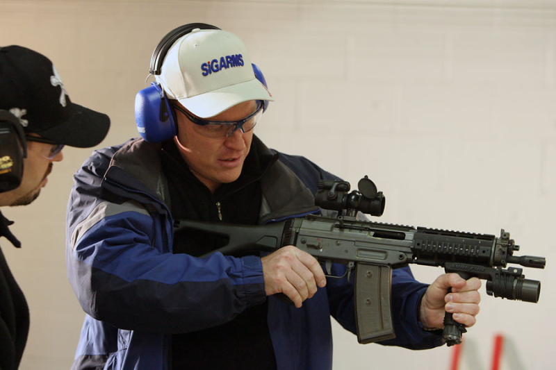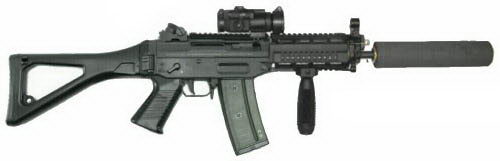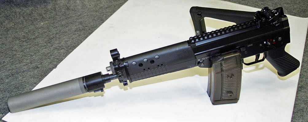 | 安装消声器的SIG SG552在室外靶场射击 | ![]() |
