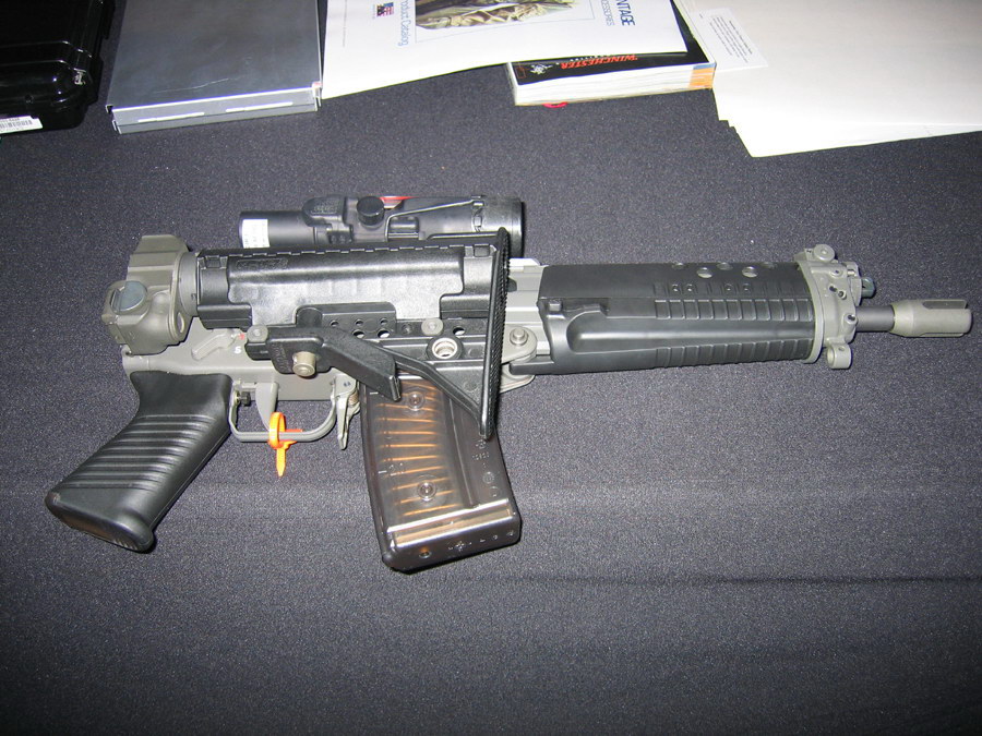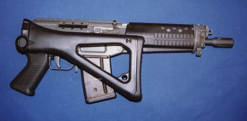 主营消声器的GEMTECH公司推出的一种SG552改装型号,最有趣的就是折叠式的伸缩枪托