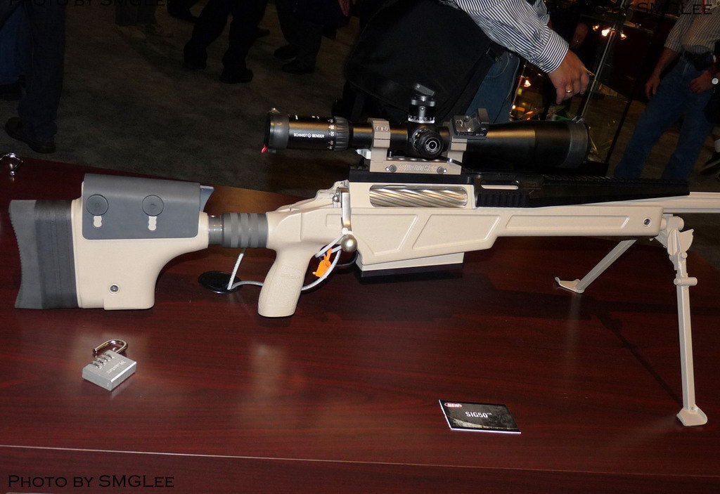 SIG公司在2011年SHOT SHOW上展出的新枪SIG 50怎么看都是麦克米兰TAC-50的新版本,只是改变了枪托的造型,在枪管上覆盖了皮卡汀尼导轨,机匣、枪机、枪管、制退器、肩托都是TAC-50的。