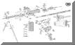 该枪的抛壳挺也比较特殊,它是一种摇臂式结构,附着在机头上方。当枪机后座86mm后,抛壳挺撞击机匣内壁的抛壳斜面,并摆向机头的另一侧,将空弹壳自抛壳口向右抛出。这种抛壳方式比一般固定式抛壳挺的震动要小。