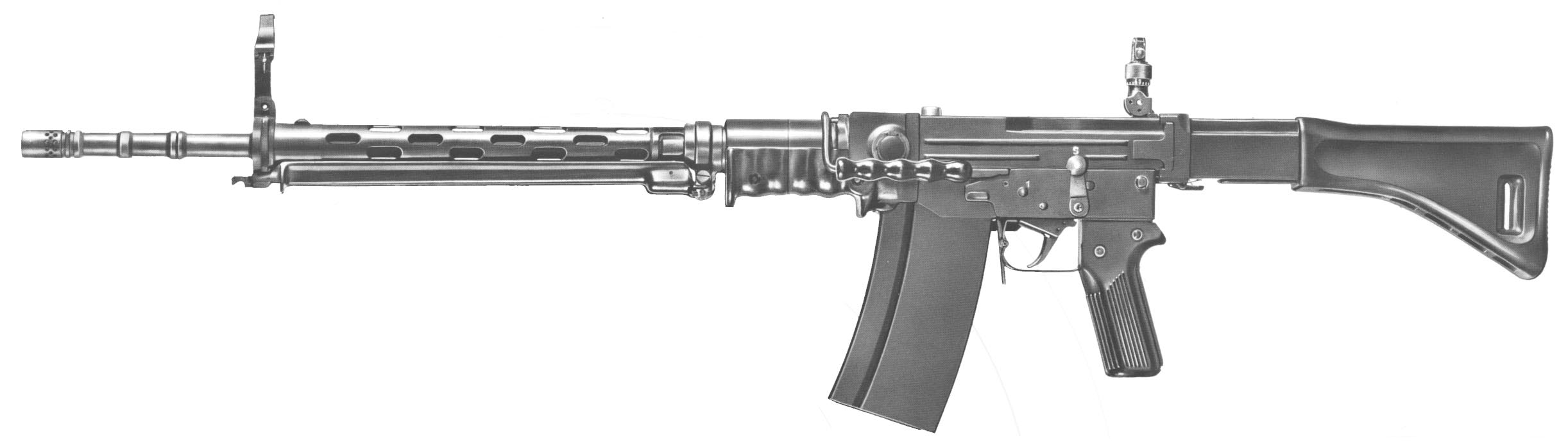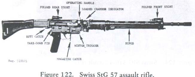 Stgw.57自动步枪是SIG公司在1954-1957年间研制,该枪参考了德国的毛瑟StG.45突击步枪和西班牙CETME步枪的原理,但采用瑞士的7.5×55mm口径步枪弹。该枪在1957年被瑞士军方采用,此外还有一些出口型和民用型,这些型号包括有: