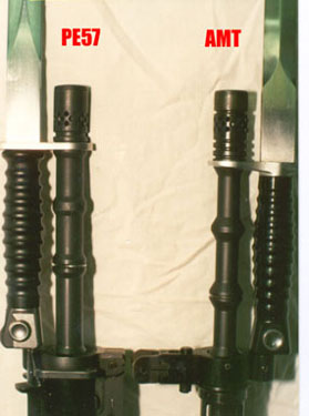 上刺刀的PE57与AMT,枪口装置的不同也显示出Stgw57与SIG510-4的不同