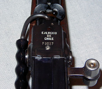 由于该枪没有挂机装置,所以当弹匣中的弹打完之后,枪机呈闭锁状态。为识别武器是否空膛,必须检查空膛指示器。