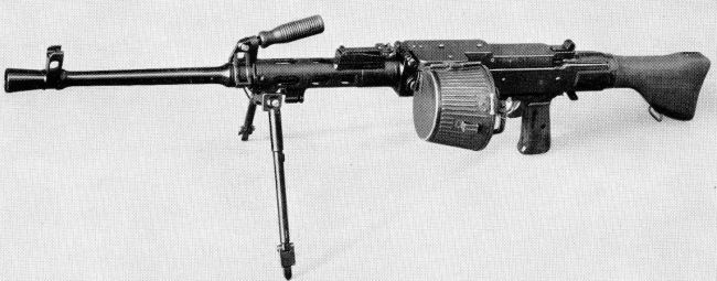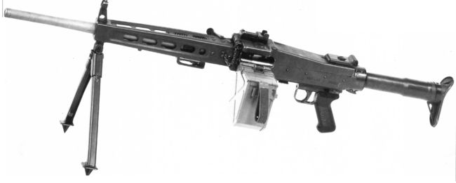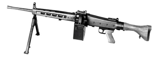 该枪的枪管更换方法比较好。按压枪管护筒右侧的固定栓,手提提把,向上向后拉出枪管。不仅可以单手操作,而且更换枪管所用的时间也比一般机枪短得多。枪管提把绝热良好,所以即便枪管灼热,也仍然可以迅速卸下进行更换。