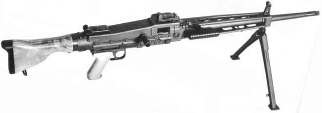 SIG710-3也是一种通用机枪,它配用两脚架可作为轻机枪使用,配三脚架后则为重机枪。该枪理论射速800~950发/分。