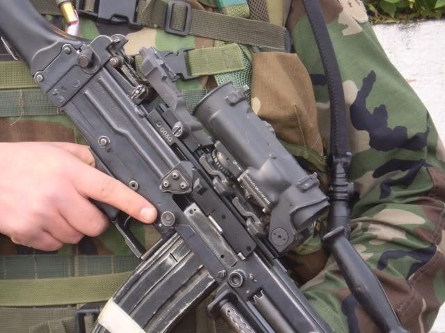 这两张照片被认为是驻阿富汗的三角洲突击队,他的Ultimax 100式MK3型在顶部安装了皮卡汀尼导轨