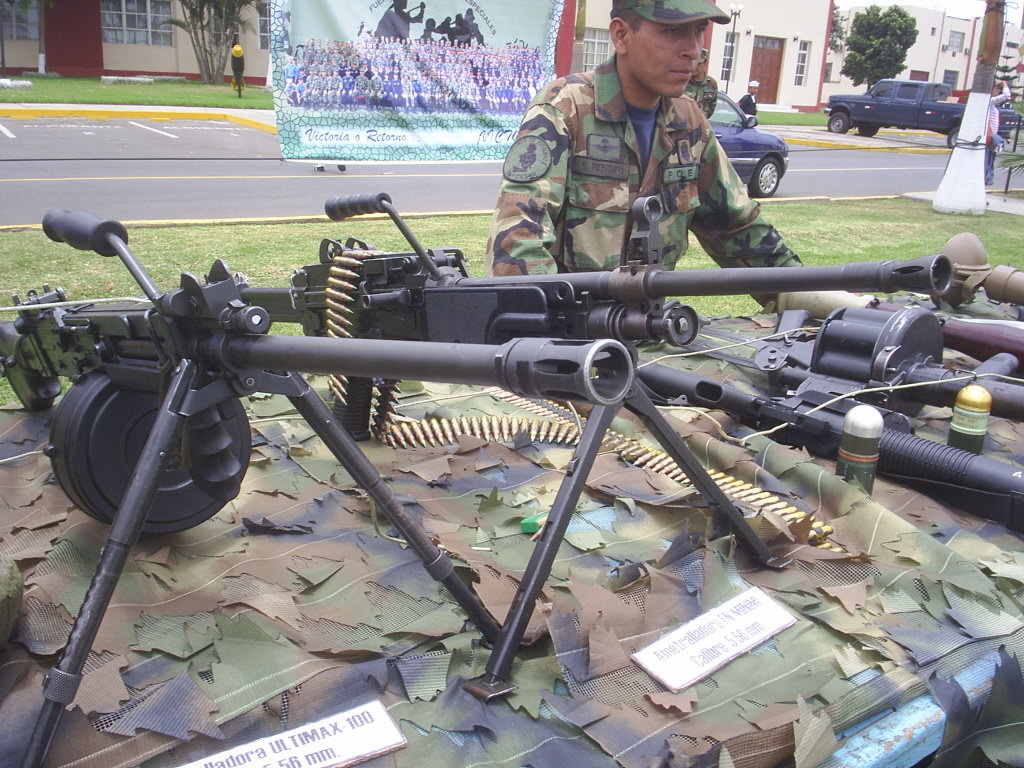 Ultimax 100轻机枪的空枪重仅4.9公斤,加上100发弹鼓后也仅重6.8公斤,这个重量只相当于其他同口径轻机枪的空枪重。但该枪独特的系统却使射击时的后坐极低,点射命中率极高。该枪在1982年开始装备新加坡武装部队,其他装备的国家还包括有菲律宾、印度尼西亚、津巴布韦、克罗地亚、洪都拉斯和秘鲁等国,美国海军的海豹突击队和以色列国防军的特种部队及南非都有少量使用。
