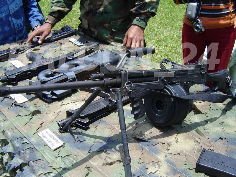 STK公司目前销售的武器,上面三种是SAR-21突击步枪,最下面的是没安装枪托的Ultimax 100式MK3伞兵型