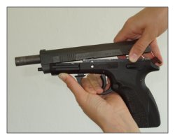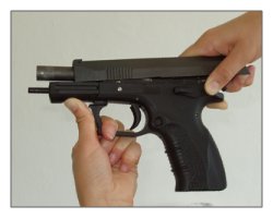 野战分解过程类似于沃尔特PP手枪,首先把扳机护圈拉出来,才能卸出套筒和枪管。