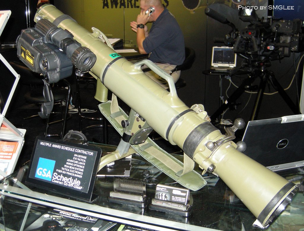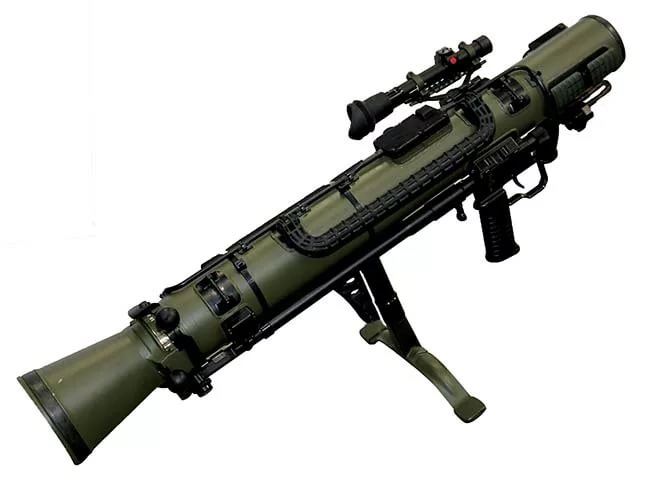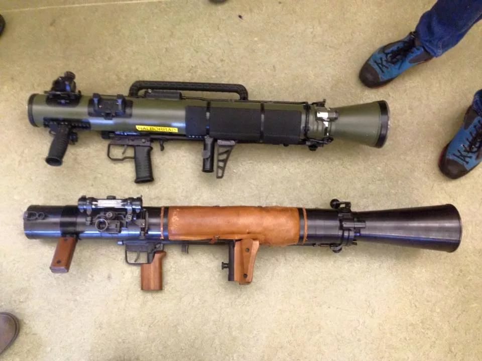 在卡尔-古斯塔夫M3(上)与卡尔-古斯塔夫M4(下)之间,还有一个造型不一样的型号,其实是在卡尔-古斯塔夫M3的炮管前部用金属箍固定上一个加厚的隔热套