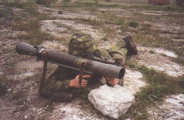 ![]() 卧姿射击时,为防止后喷焰烧伤炮手自己,所以要用这样的姿势 |