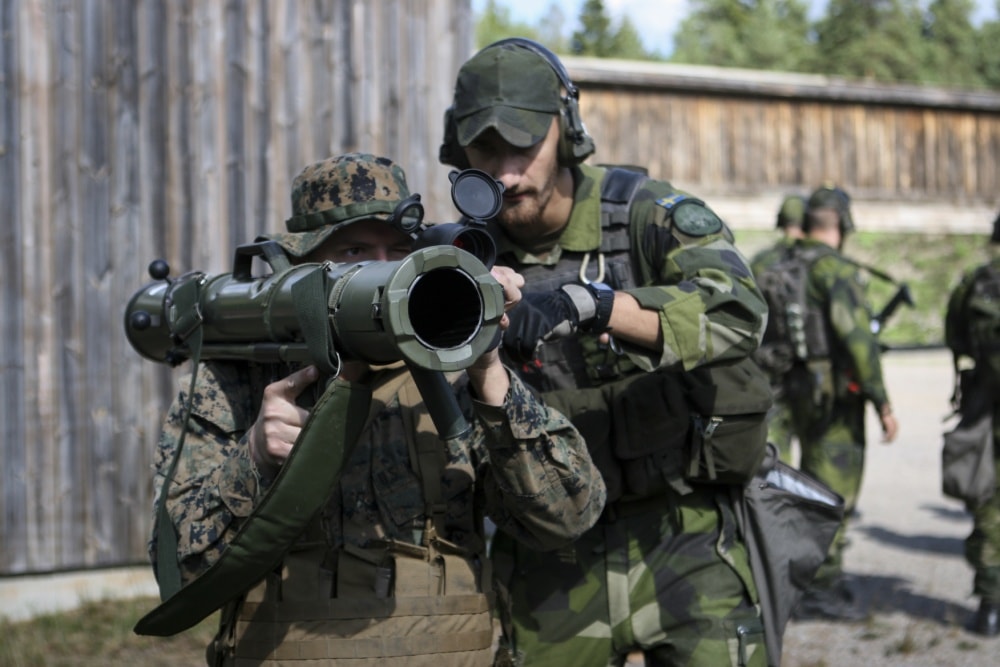 使用卡尔-古斯塔夫M2的瑞典陆军炮手
