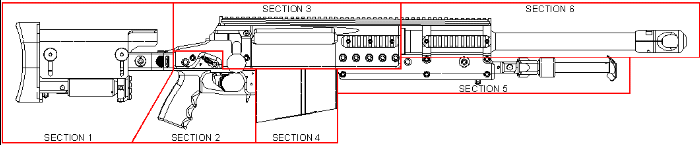所有OM50步枪都是以同样的航空铝材机匣和钢枪机组为基础,枪机为手动操作的旋转后拉式。机头上有3个闭锁凸笋,进入枪管节套的闭锁槽内闭锁。枪管为浮置式,通过一组螺钉固定在机匣前端。扳机是两道火类型,完全可调。机匣连接有前托。机匣顶部有皮卡汀尼导轨,可安装各种瞄准镜及其他配件(激光、夜视仪、战术灯等)。顶部导轨可提供20至40个MOA的角度调整。