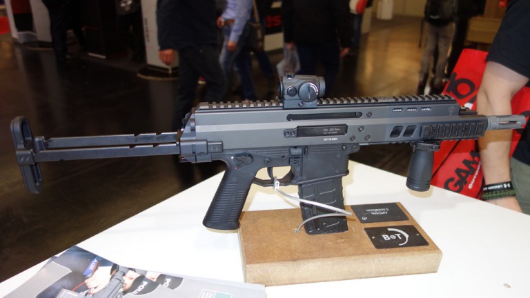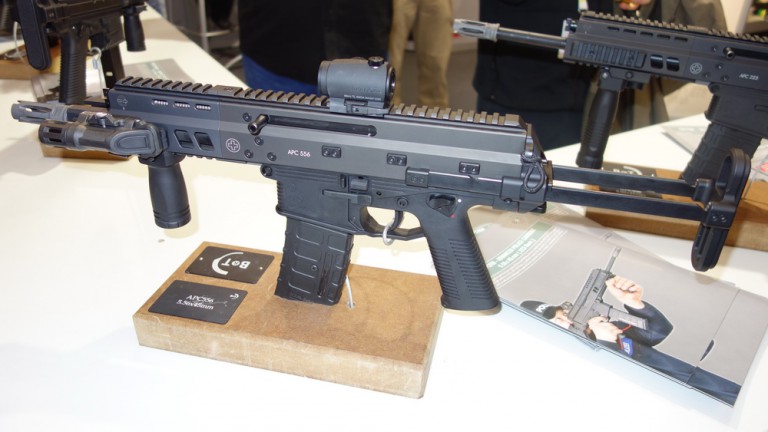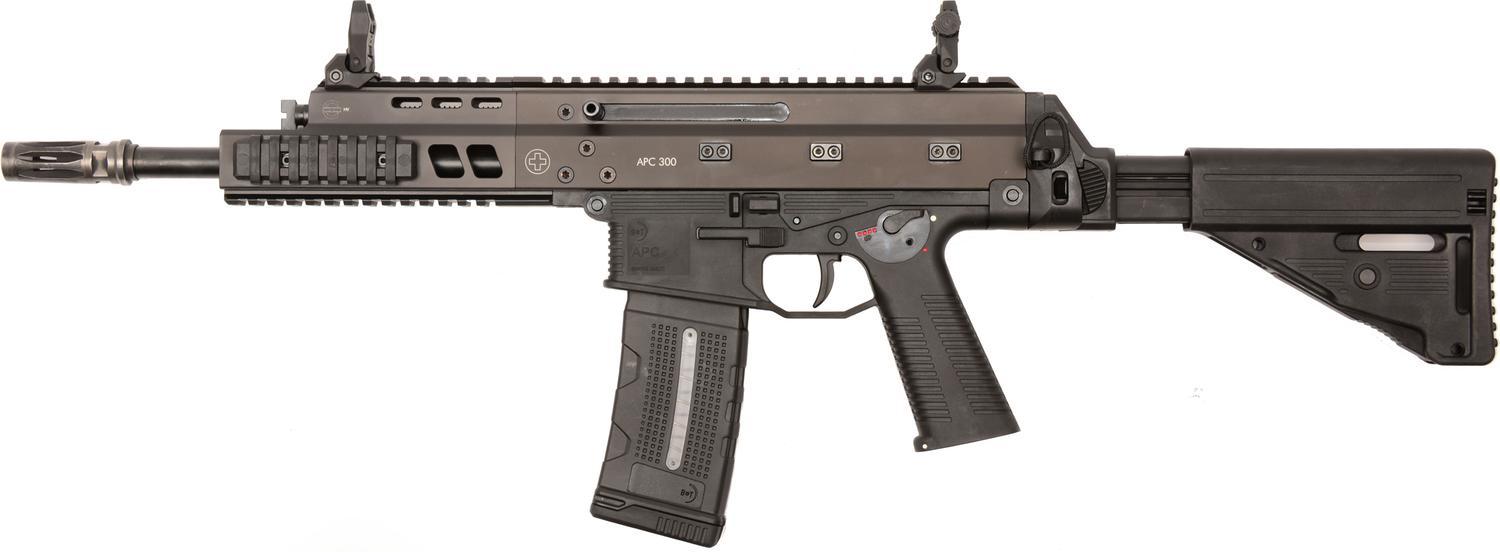 B&T公司的APC高级警用卡宾枪正如其名称所示,是为警察和安全部队设计的。除发射手枪弹的APC9/APC45系列冲锋枪及半自动卡宾枪外,还有发射步枪弹口径的APC556/APC233、APC300和APC308这两个系列。APC556和APC223都是发射5.56X45mm口径弹,前者是军警用型,有全自动和半自动两种类型,后者是发射民用的.223雷明顿弹,只有半自动型。而APC300在外观 上与APC556/223一样,但却发射.300 BLK弹。但由于欧洲有些国家不能得到.300 BLK弹,所以在欧洲出售时B&T公司也提供有兼容的.300 Whisper消声弹,据信,有一些欧洲反恐特种部队已经在装备了.300 Whisper消声弹。