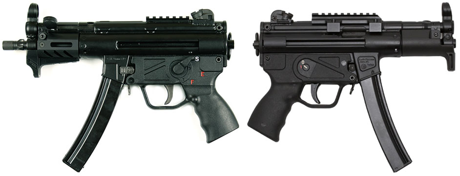 仿自MP5K的两个方案,左边是PTR公司的TR 9CS,右边是鼎盛枪械公司的Z-5K