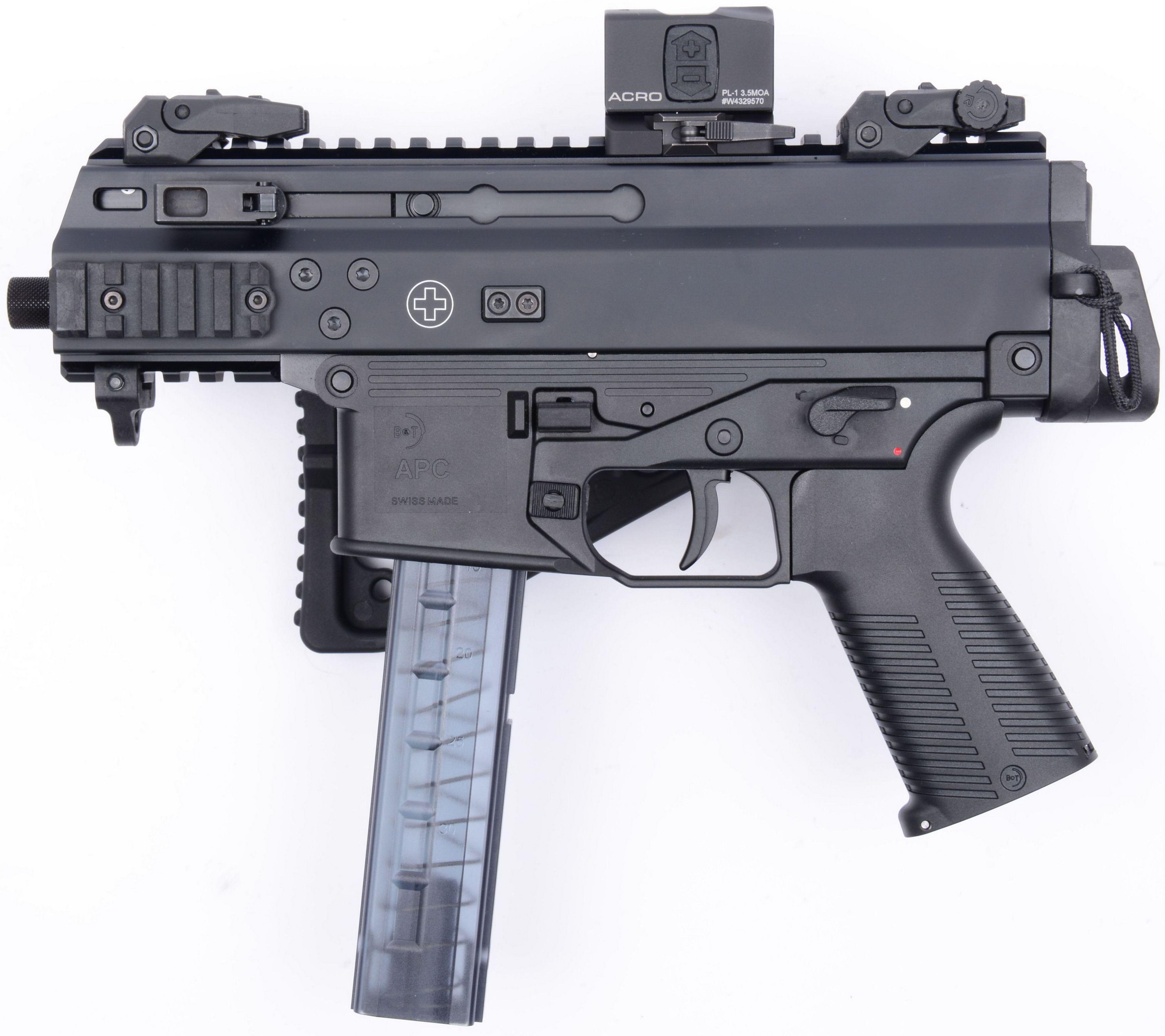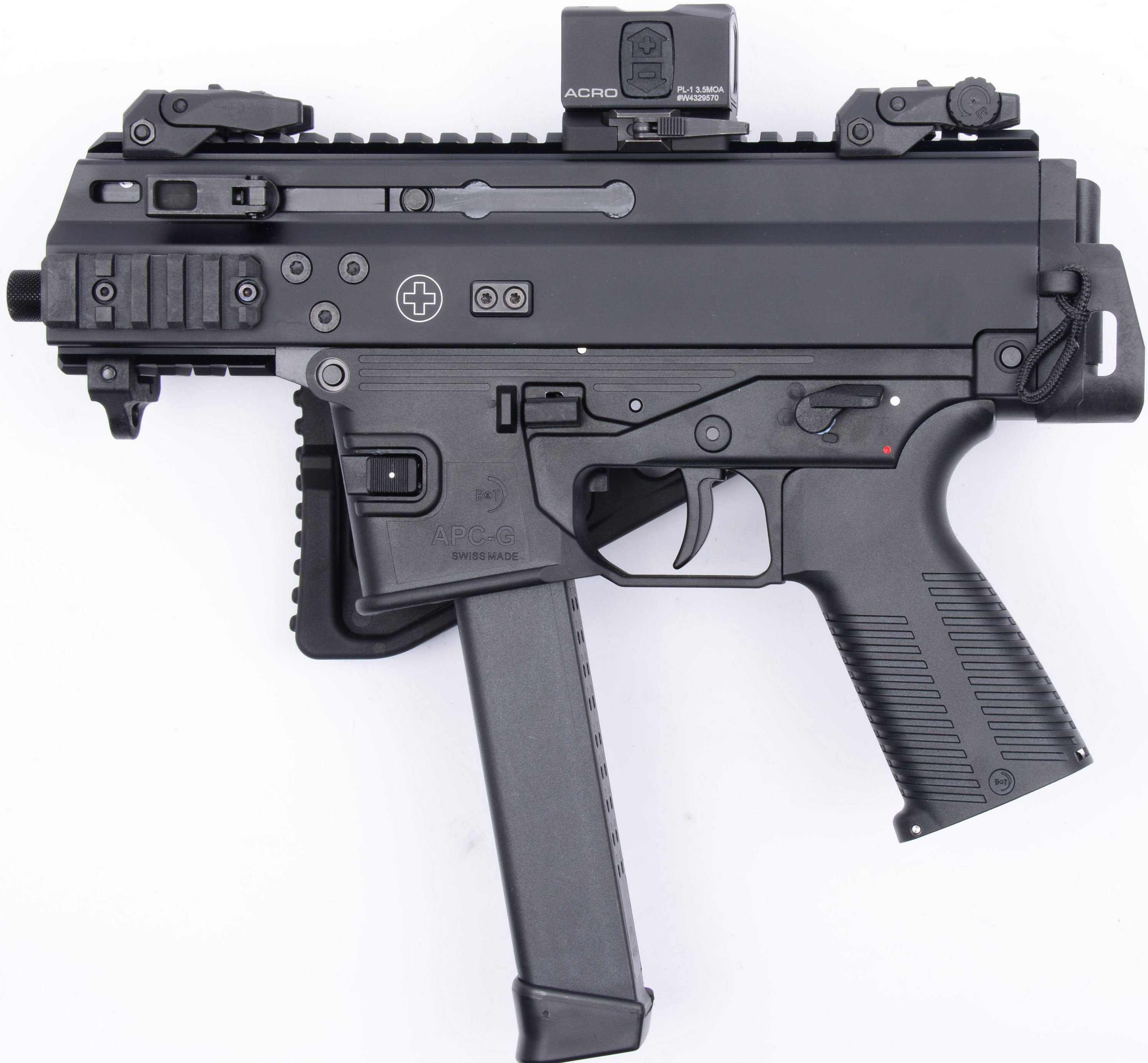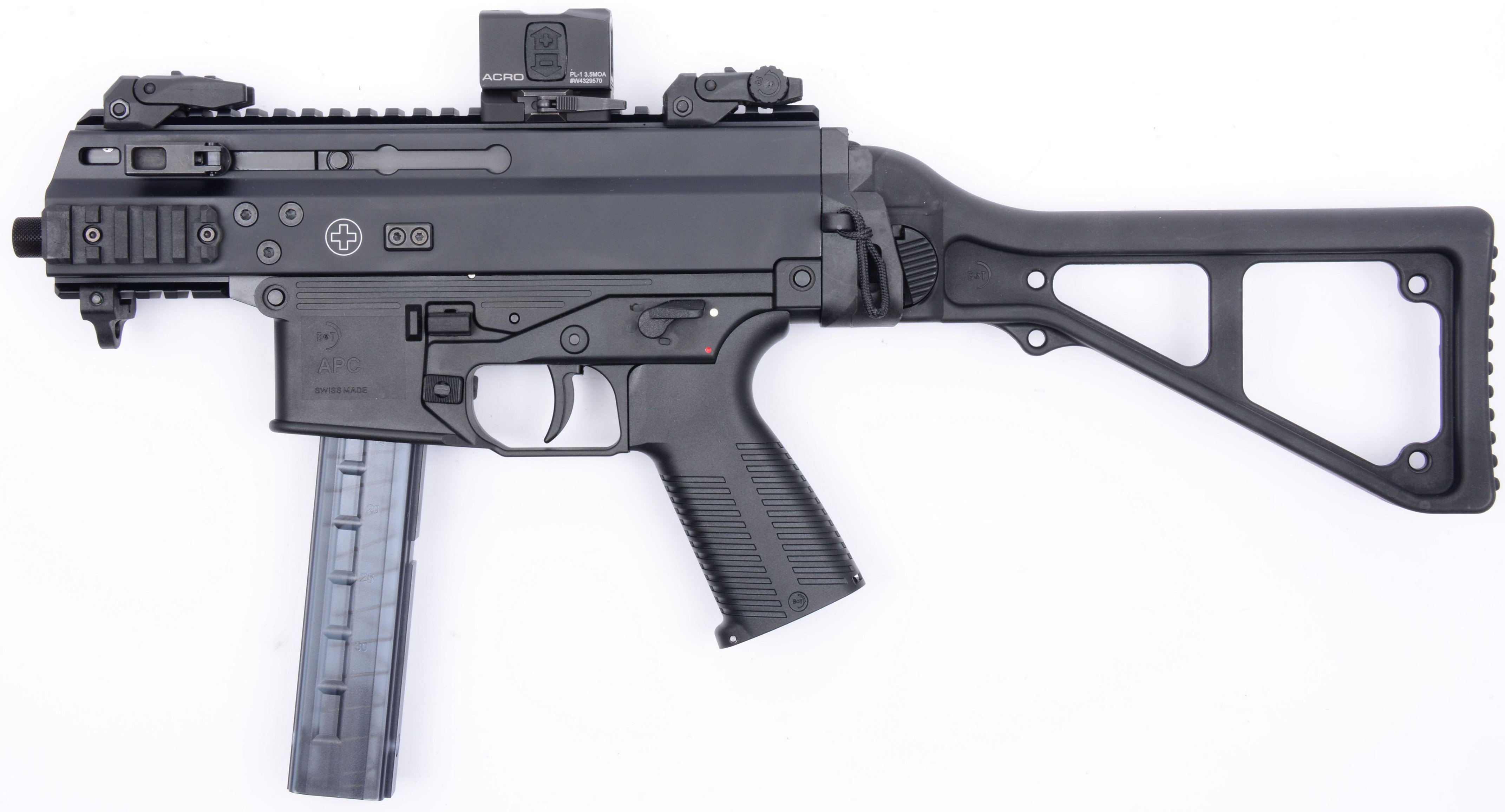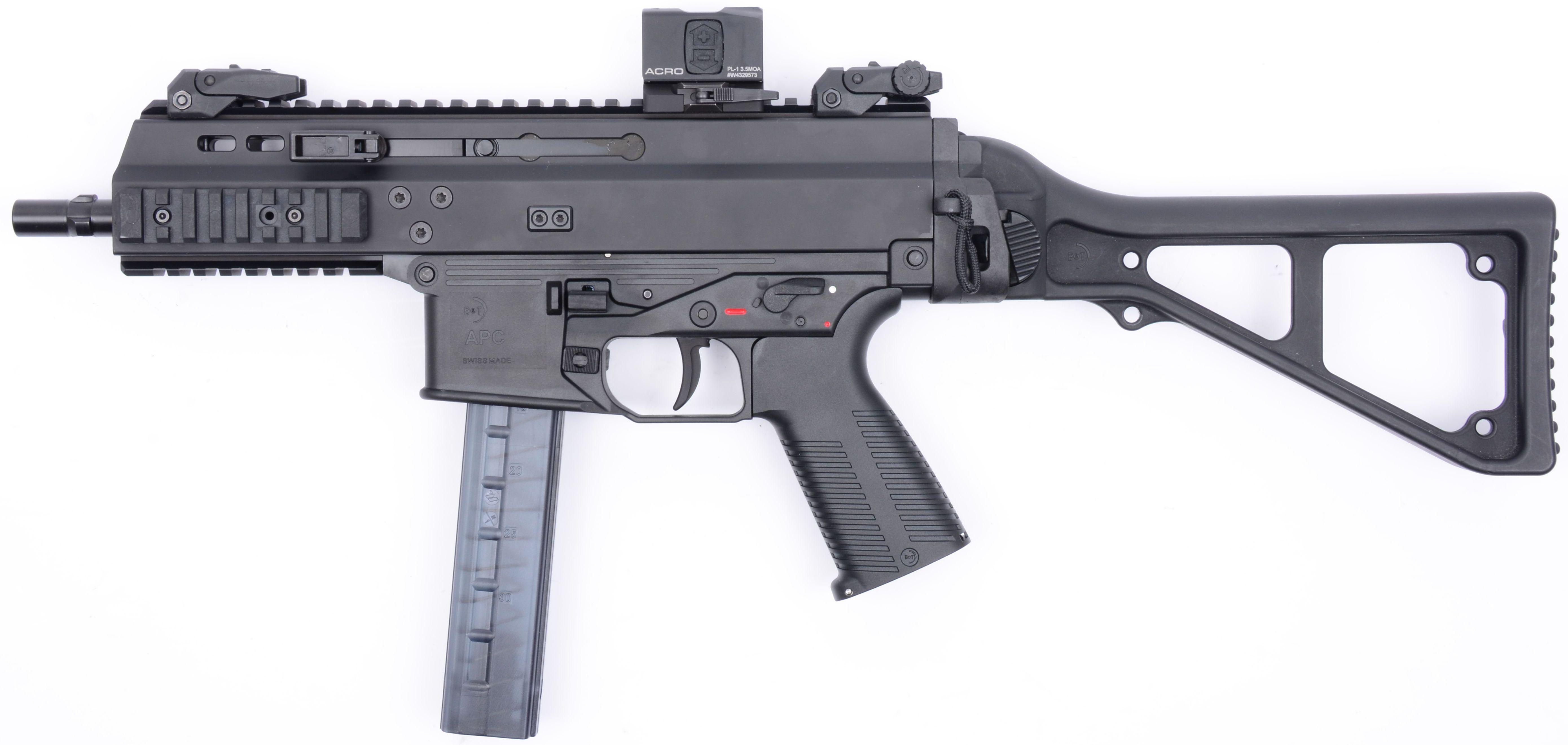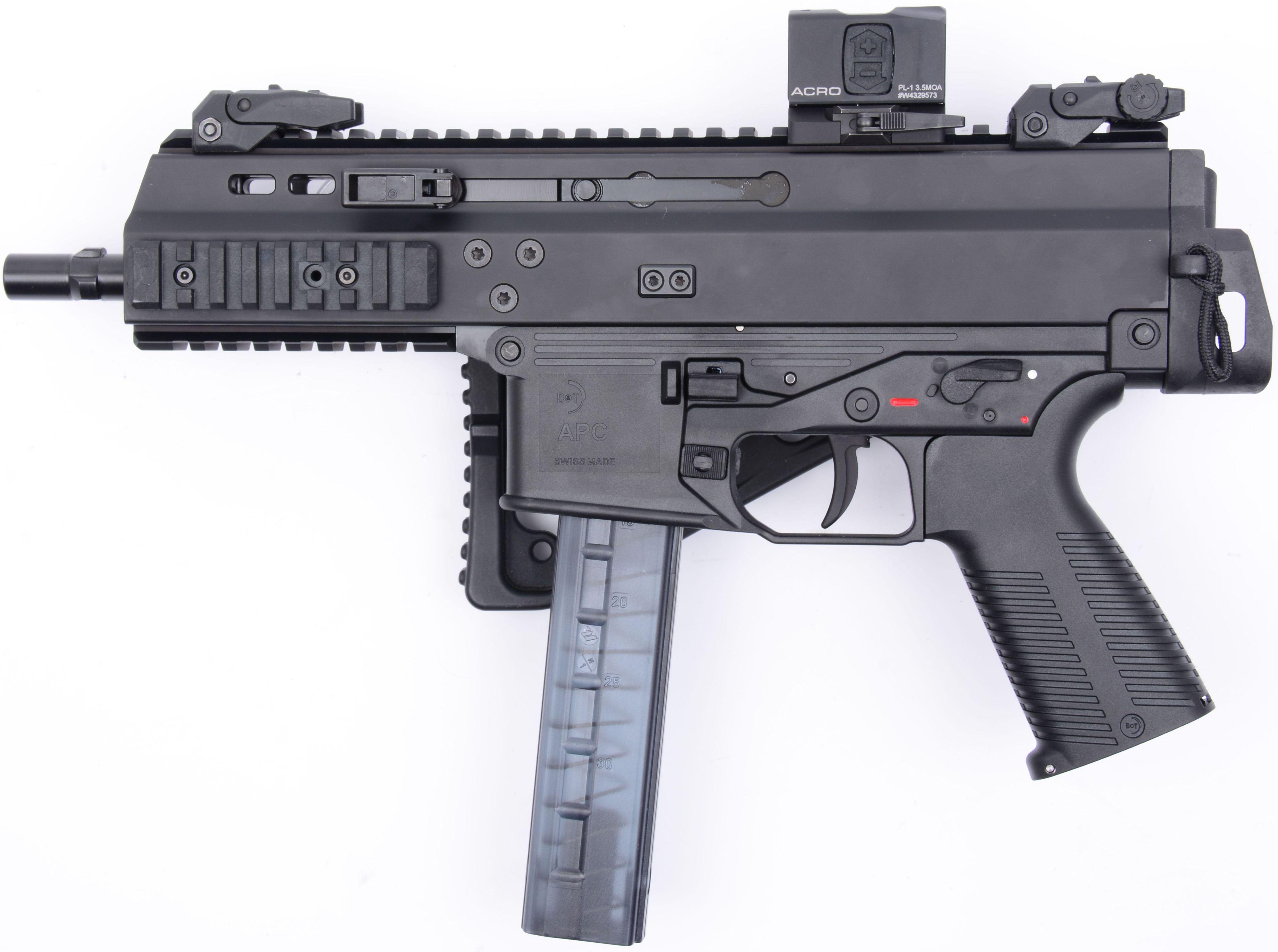 2011年,B&T公司推出了一种名为“先进的警用卡宾枪”(Advanced Police Carbine)的枪族,简称APC,整个枪族主要分为手枪弹口径和步枪弹口径两大类。手枪弹口径均为自由式枪机,有APC9系列、APC45系列以及最新的APC40系列,步枪弹口径则为导气式原理,有APC223/APC556系列、APC300系列及APC308系列。不过目前在B&T的官方网站上,手枪弹口径只找到APC9 PRO和APC45 PRO两个名称,而打开具体的产品介绍,也只发现APC9 PRO一个系列。估计是其他口径推销了几年都没什么起色,就不再专门推销了,但如果下专门订单应该还是能买到的。而APC9/45的PRO系列是2019年推出的改进型。
