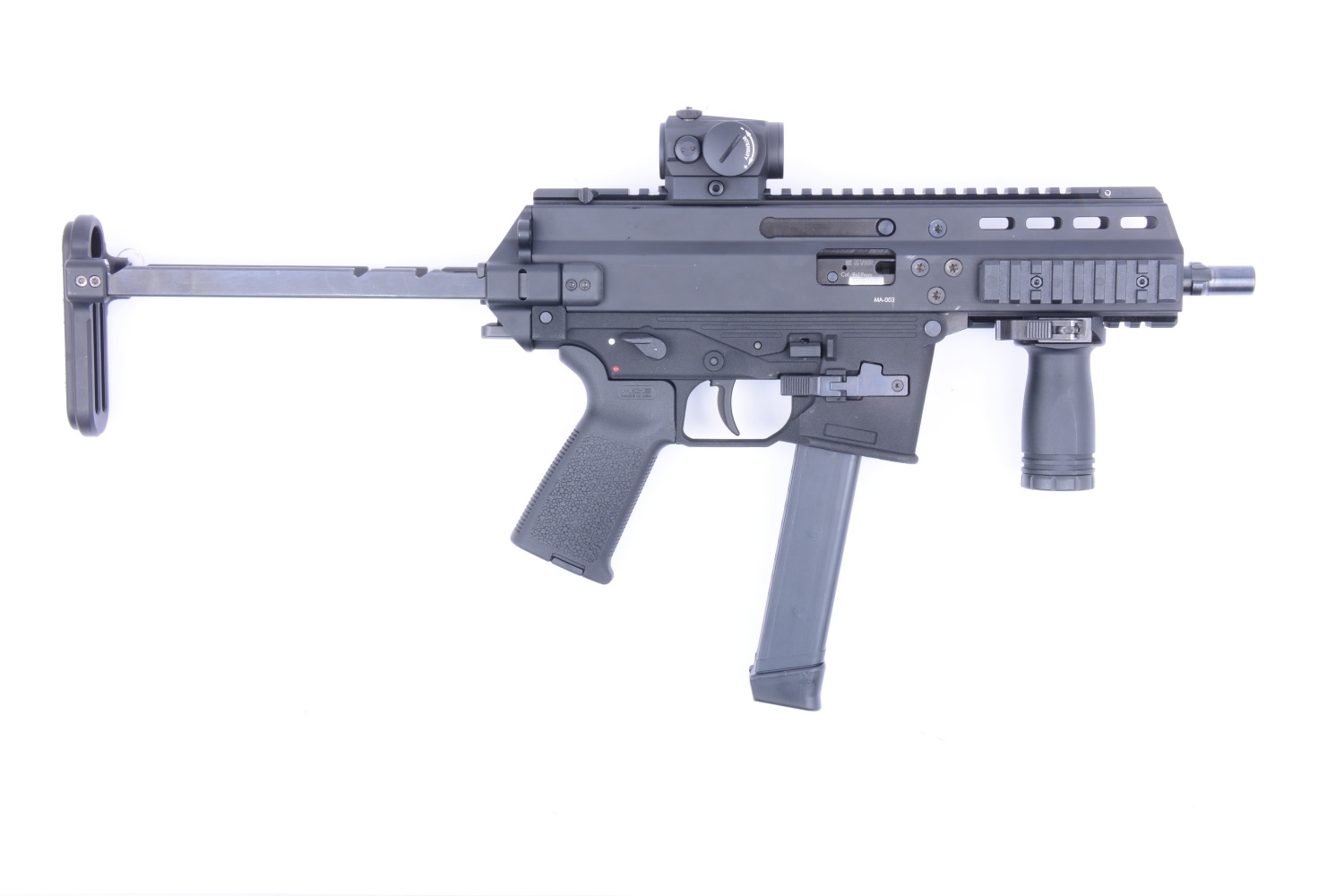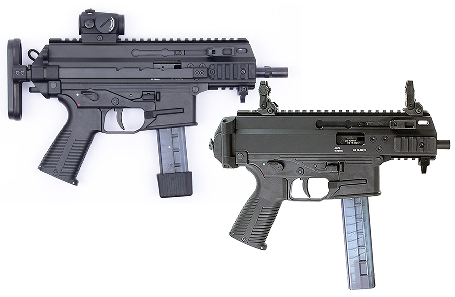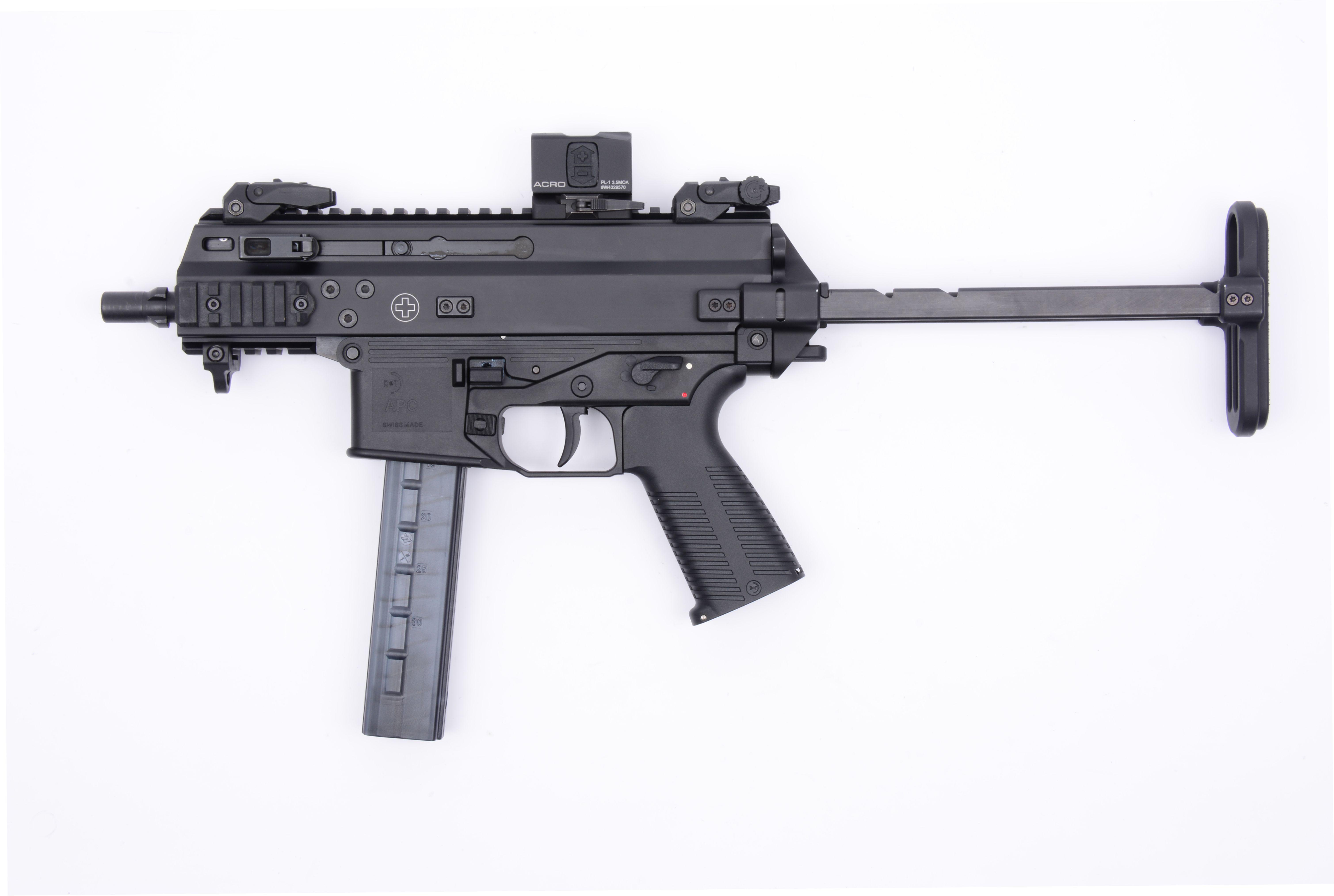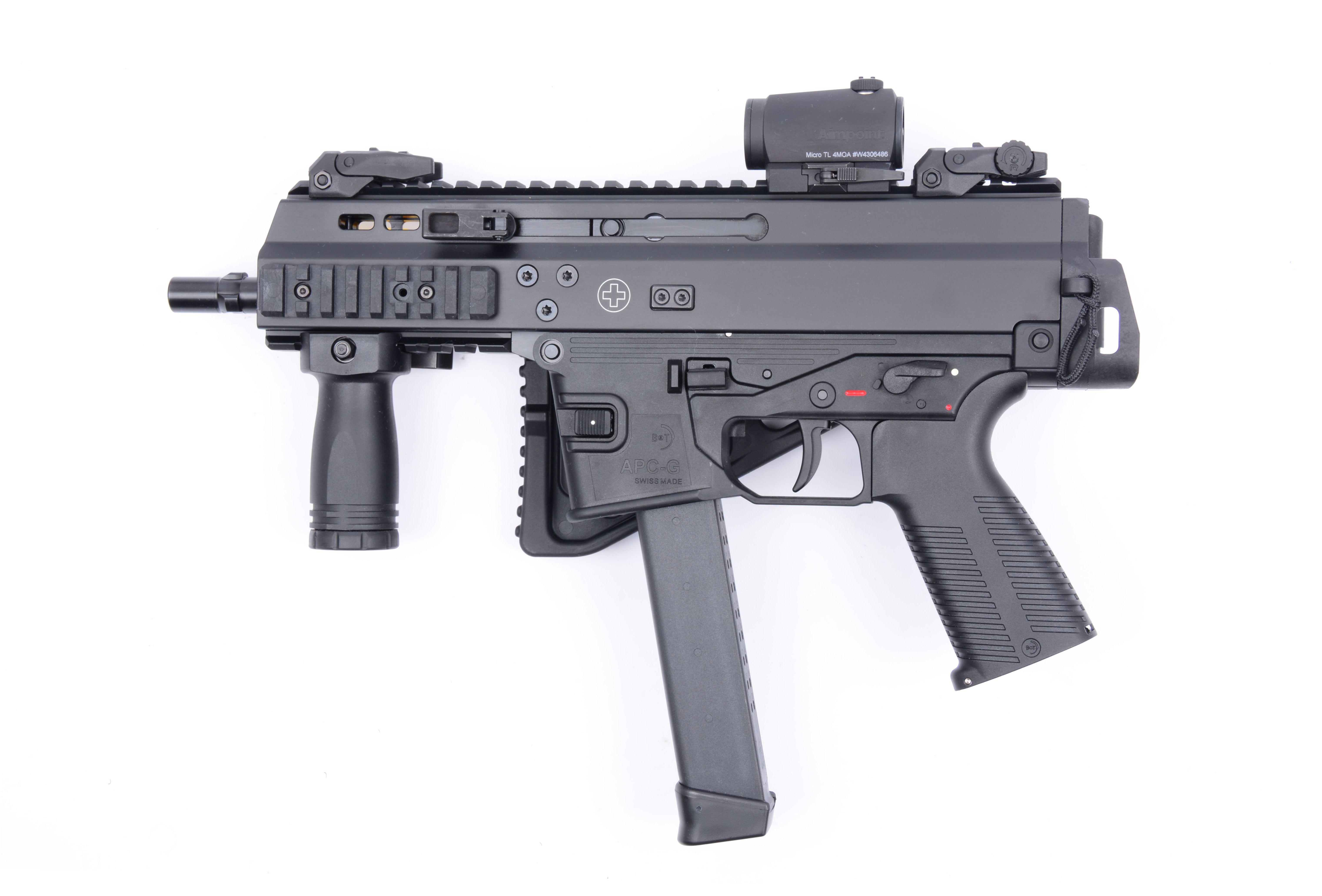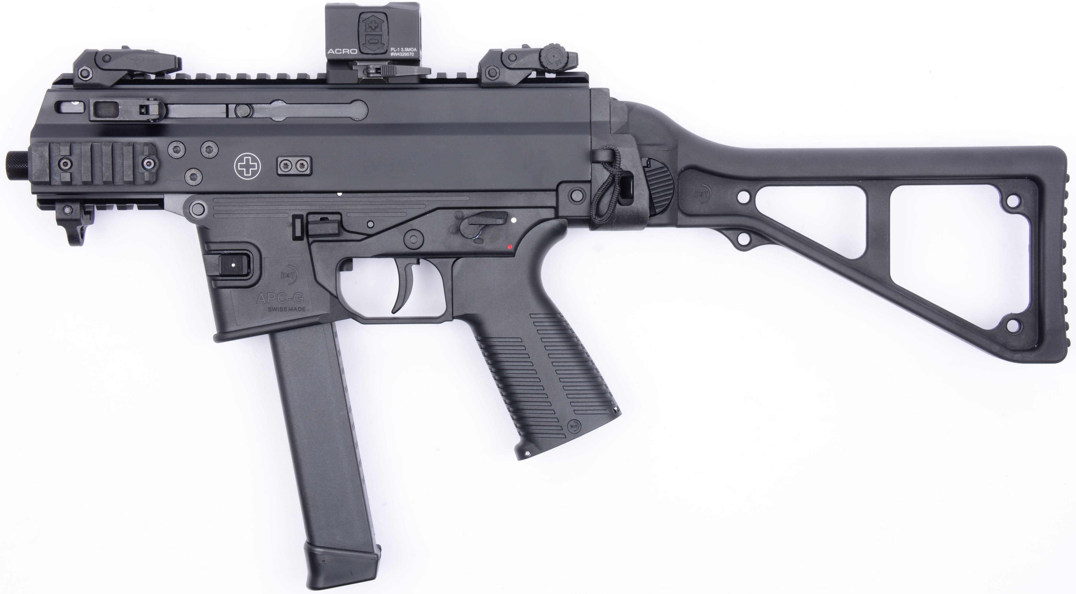 2011年,B&T公司推出了一种名为“先进的警用卡宾枪”(Advanced Police Carbine)的枪族,简称APC,整个枪族主要分为手枪弹口径和步枪弹口径两大类。手枪弹口径均为自由式枪机,有APC9系列、APC45系列以及最新的APC40系列,步枪弹口径则为导气式原理,有APC223/APC556系列、APC300系列及APC308系列。不过目前在B&T的官方网站上,手枪弹口径只找到APC9 PRO和APC45 PRO两个名称,而打开具体的产品介绍,也只发现APC9 PRO一个系列。估计是其他口径推销了几年都没什么起色,就不再专门推销了,但如果下专门订单应该还是能买到的。而APC9/45的PRO系列是2019年推出的改进型。
