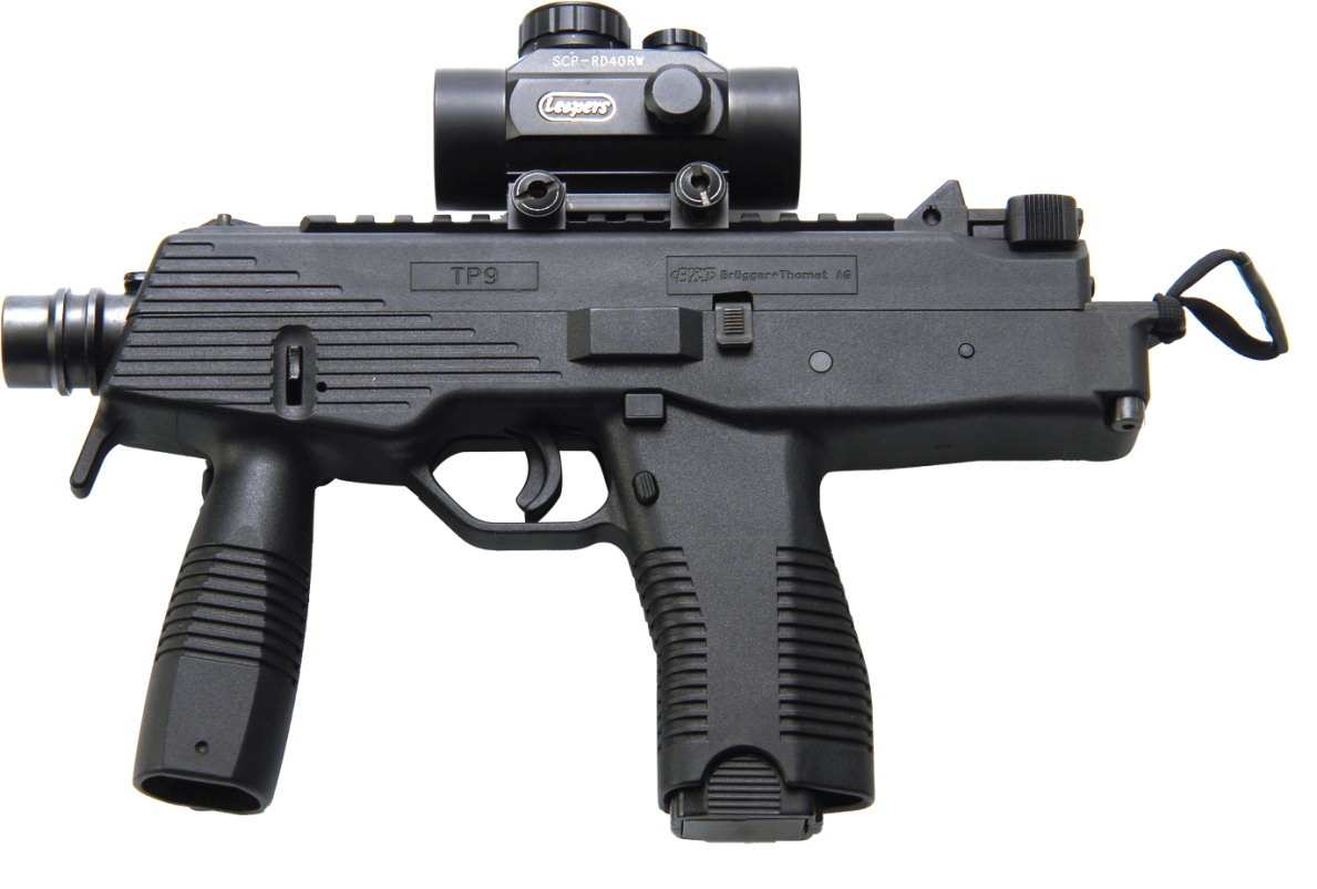 TP9是MP9的半自动型,事实上TP9有两种型号:一种是带可拆卸枪托,且保留前握把,被称为TP9卡宾枪(但受其原理所限,没有采用加长枪管);一种是不带枪托,取消前握把但改为皮卡汀尼导轨,被称为TP9手枪(类似于斯太尔SPP)。