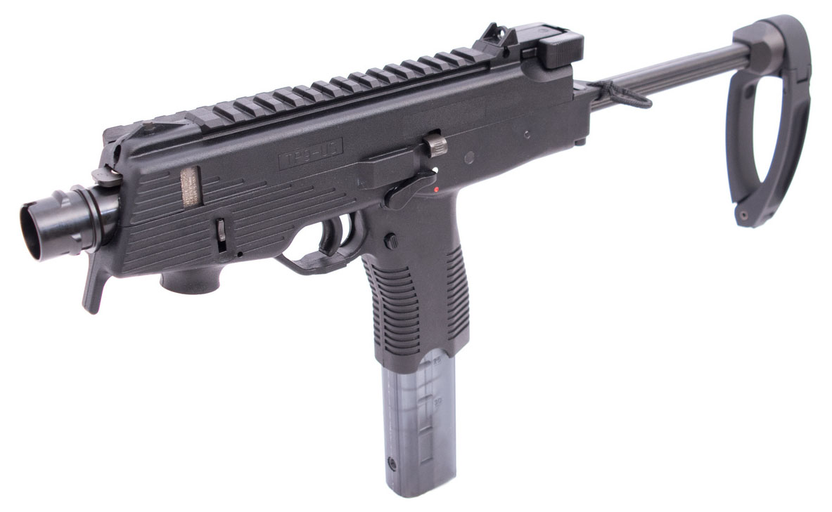 与MP9-N一样,TP9-N也是在原来的横推式保险按钮位置上改成了一对左右两侧都可操作的手动拨杆,但TP9-N不能全自动,所以这仅仅是作为手动保险的存在。虽然说是手枪,但如果用户需要,厂家可配上与MP9相同的折叠式枪托。TP9-N也有分带折叠式枪托的卡宾枪系列(在美国民间市场定义于SBR短枪管步枪,销售受到严格管控)和没有枪托及前握把的手枪系列。但在美国有商家提供“前臂托”(BRACE)走法律缝隙,明明有枪托却因为不属于“肩托”而可以当作“手枪”出售。
