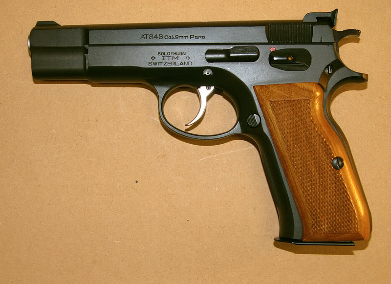 这是瑞士经过捷克授权,在1980年代后期仿制的CZ 75手枪,但经过了一些改进,因此虽然外观上与CZ 75几乎一样,但许多部件都不能与CZ 75互换。ITM AT-84S的生产质量颇高,精度和可靠性都比较好,射击舒适,更换枪管和弹匣后可发射不同口径的枪弹。后来又推出了AT-88,主要是针对保险、击针和枪管/套筒闭锁方式进行了多项改进。现在瑞士的ITM已经被斯芬克斯系统取代。