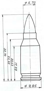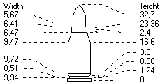 ![]() 从左到右:7.62×25mm TT,.224-VOB,9×19mm Para |