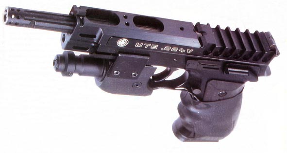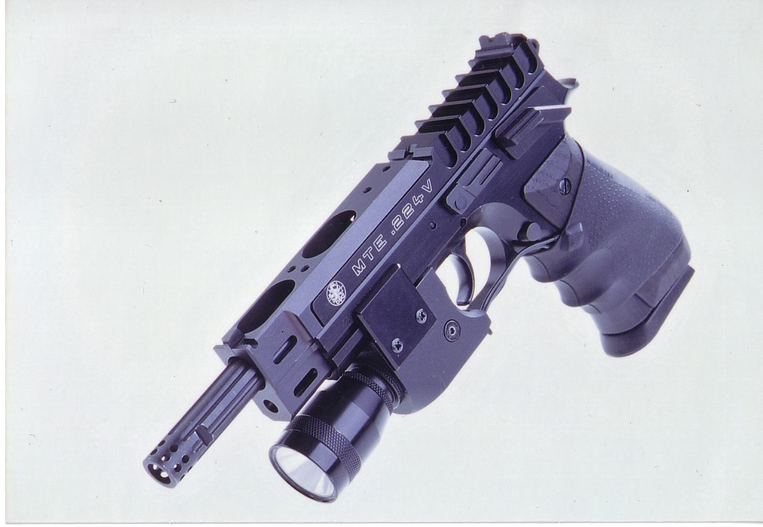 MTE-224V和MTE-224VA手枪是由瑞士MARTIN TUMA ENGINEERING, Gmbh公司研制的,而捷克的LUVO研究所则参与其中,据说弹药是由他们负责的。MTE-224V和MTE-224VA手枪是一种为非一线战斗人员或特种部队提供的半自动的个人自卫武器,它们所发射的.224-VOB弹是一种类似于FN公司的5.7×28mm的小口径高速手枪弹,这种口径是通过缩小7.62×25mm托卡列夫手枪弹弹壳的瓶颈直径以容纳一颗5.56×45mm北约标准弹的45格令(2.9g)弹头而得来的。
