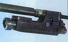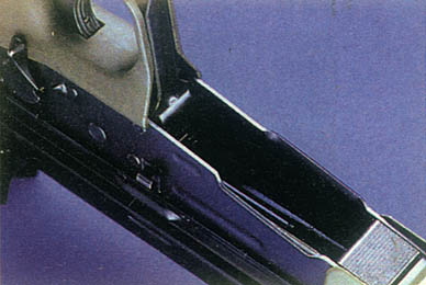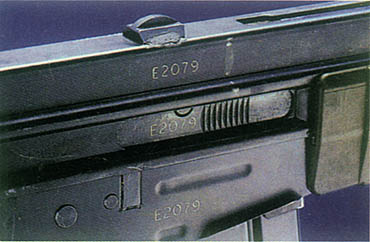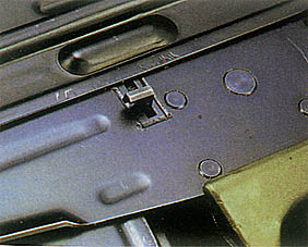 ![]() 机匣右侧的抛壳口,机匣顶部的凸起是安装瞄准镜用的 |