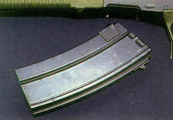 弹匣由薄钢板冲压后焊接成型,其中5.6mm口径的SGC42和MPC41的弹匣容量有20发或30发两种;而6.45mm口径的SGE22和MPE21的弹匣容量只有25发一种。弹匣由带连杆的弹匣卡笋固定。弹匣卡笋连杆的形状及长度,随有无扳机护圈而不同。