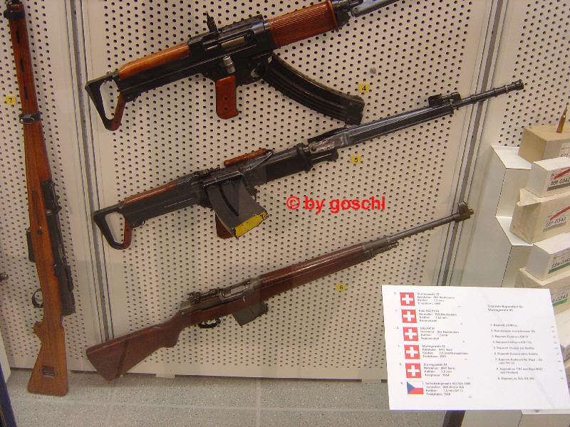 随后在1951年左右,伯尔尼兵工厂又把Sturmgewehr 52突击步枪改为发射7.5×55mm GP11步枪弹,并重新命名为Sturmgewehr 54。但STG54最终输给了SIG公司的Stgw.57。