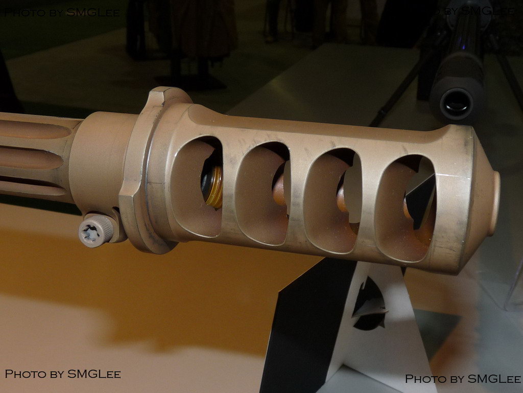 这是.416巴雷特口径的M82A1,外观上与M107A1相近,但它的枪口制退器是三室的