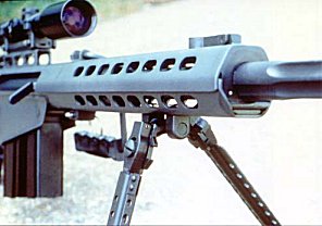 M82A1的可调两脚架与M60机枪通用,握把则与M16A2步枪通用。提把装在护木上面,位于瞄准镜前方。在M82A1弹匣前方还可以安装巴雷特公司研制的伸缩架座,这个架座可以使M82A1架在三脚架或车、船等载具上,而且可以在后坐过程中充当缓冲器,防止车体架座受到损坏。 |