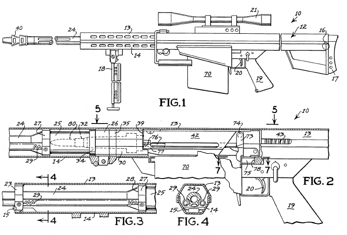 M82A1半自动狙击步枪,采用枪管短后坐原理,半自动发射方式。枪管短后座原理是著名枪械设计师勃朗宁(John M. Browning)开发的,而巴雷特将这种原理改进使之适合作为肩射武器的自动原理。