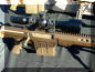 下机匣为聚合物材质,尽可能地减轻了全枪质量,所以全枪最重不过6.3-6.9公斤(根据不同的枪管长度)。弹匣为10发双排双进弹匣,弹匣卡笋左右都可操作。手动保险柄的位置左右可换,而且转动角度非常小,只有45度,虽然握把是AR式的,但保险柄转动角度就比传统AR的要小。MRAD的扳机组也能快速拆卸,方便维护保养,只需要分解上下机匣,然后抽出保险杆,就可以取下整个扳机机构。另外,扳机力和扳机行程均可调。