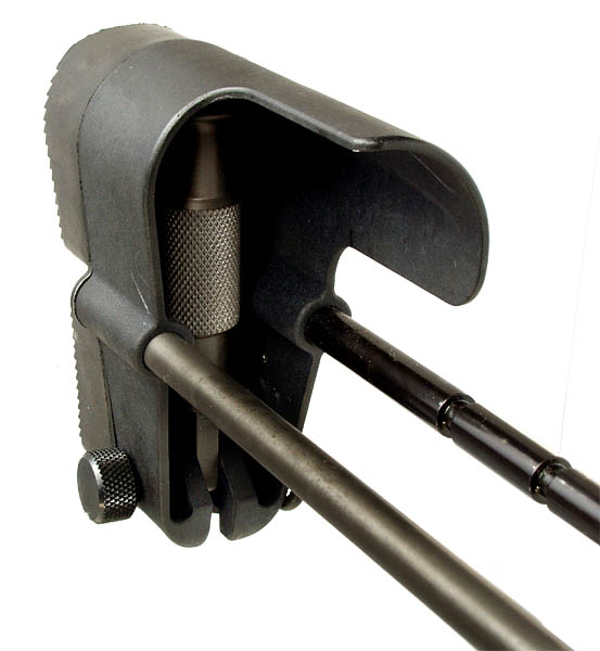 把M100步枪的两脚架向前延伸,如果是M200,两脚架可以装在枪管护筒上