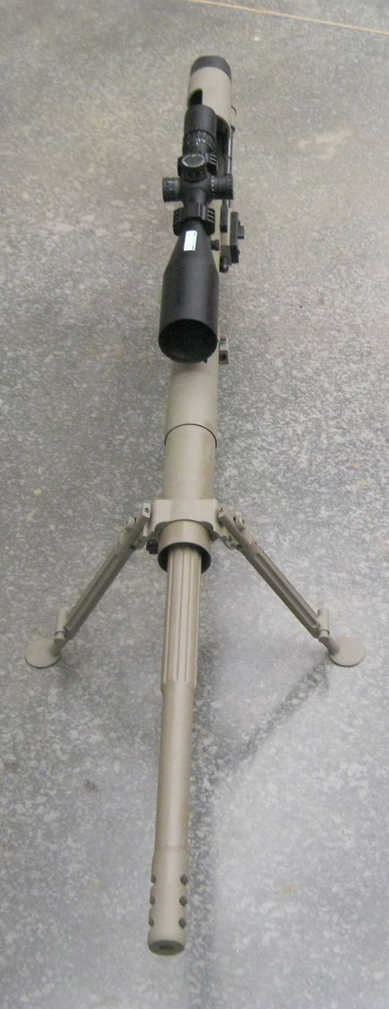 枪管后半部被从机匣上延伸的管状护筒包裹,折叠两脚架和提把都装在枪管护筒上面,同时也能充当前托。提把不使用时可偏转到护筒下方,而两脚架在不使用时也可以折叠起来。发射机座安装在机匣底部尾端,伸缩式枪托则安装在发射机座上。发射机座前为可拆卸的单排弹匣,可容纳7发.408 CheyTac弹或.375 CheyTac弹。该枪没有机械瞄具,在机匣顶部有皮卡汀尼导轨用于安装瞄准镜。