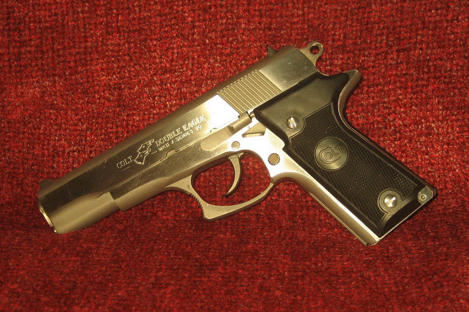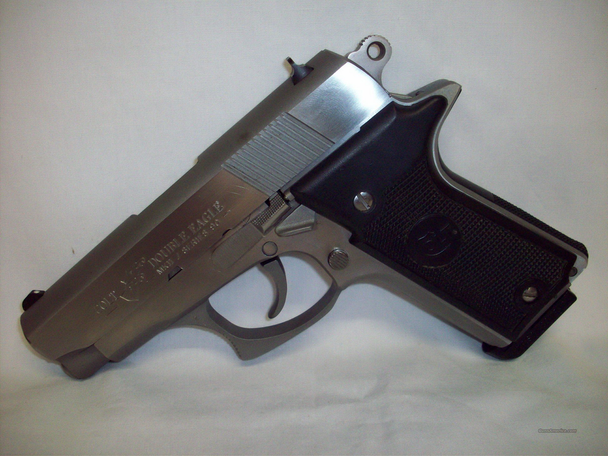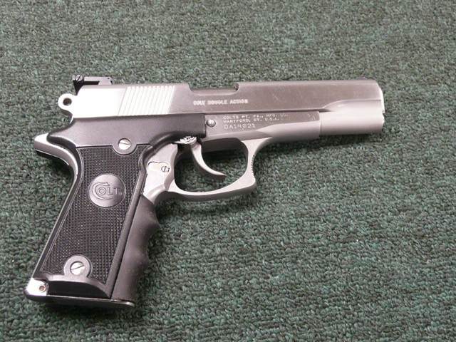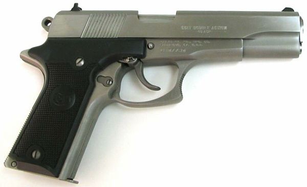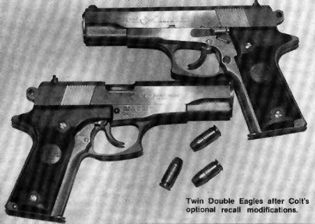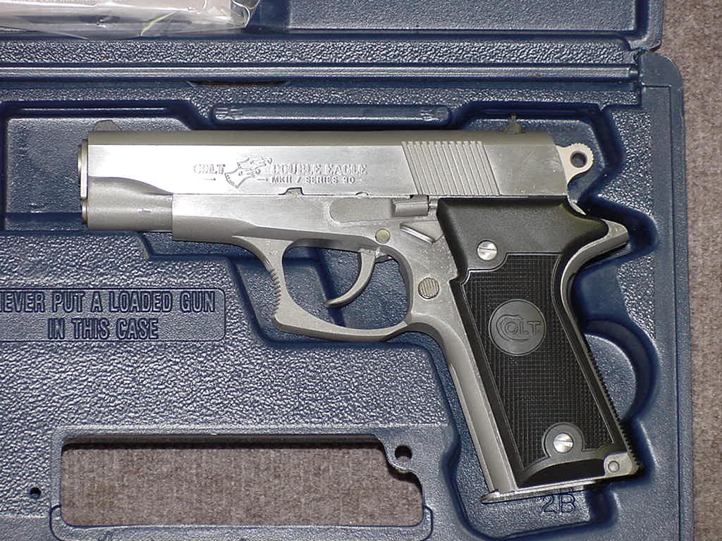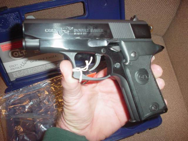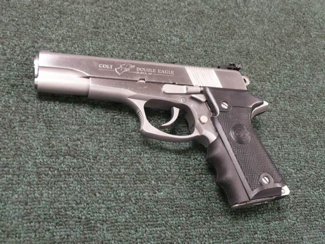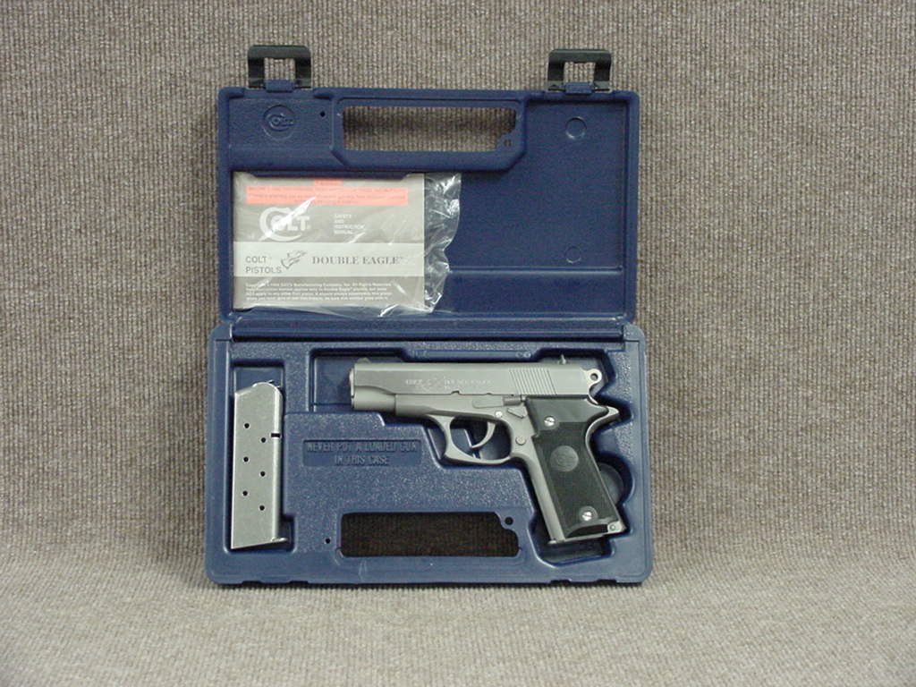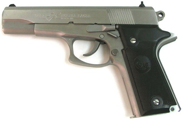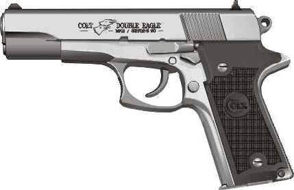 柯尔特双鹰手枪(Colt Double Eagle)是柯尔特公司在1989至1997年间生产和销售的,双鹰手枪的口径主要有三种:.45 ACP、.40 S&W和10mm Auto。但偶然能找到一些改为9mm或.38 Super的型号。与M1911相同,双鹰手枪也分有标准的全尺寸型(full-sized),和紧凑的指挥官型(Commander)和军官型(Officers)三种型号。全尺寸型发射.45 ACP和10mm Auto,采用8发.45双排弹匣或7发10mm双排弹匣;而指挥官型发射.40 S&W,采用8发双排弹匣;军官型只有.45 ACP型,采用7发单排弹匣。