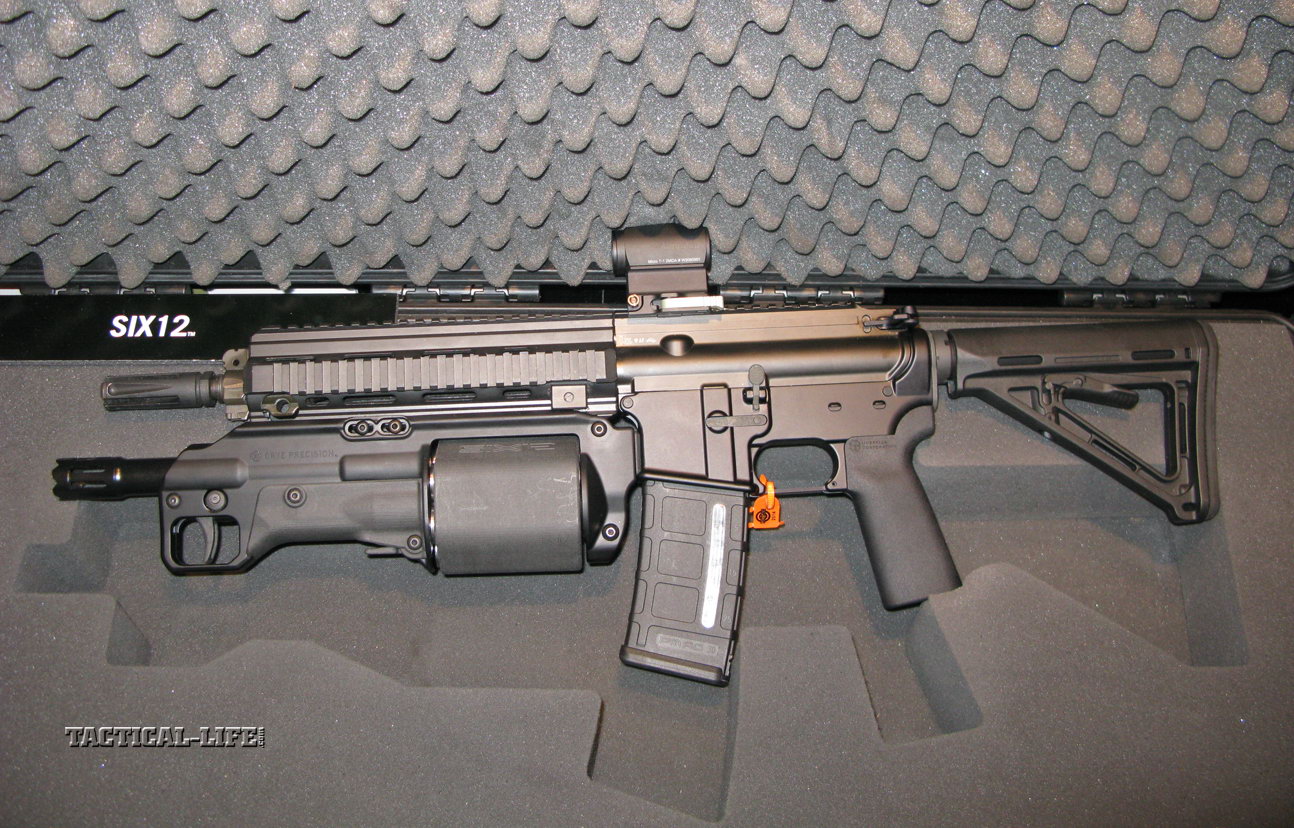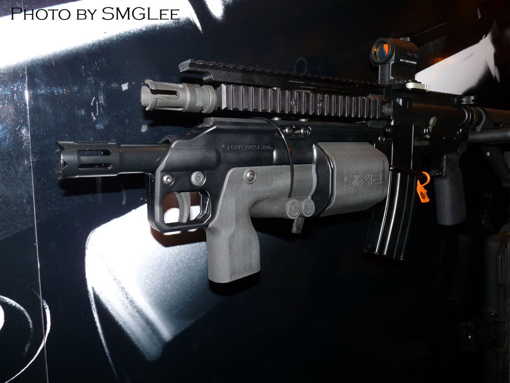 Six12有三种型式,第一种是可以通过皮卡汀尼导轨安装到AR式步枪的护木底部,枪管长12.5英寸,当然这种短枪管型号是受NFA法律管制的,平民用户需要交200美元的税向BATF申请。
