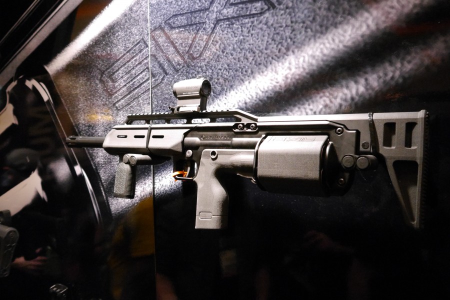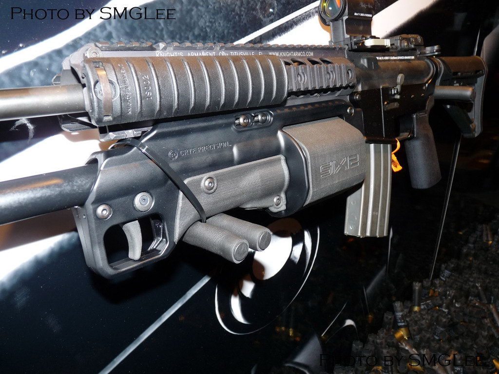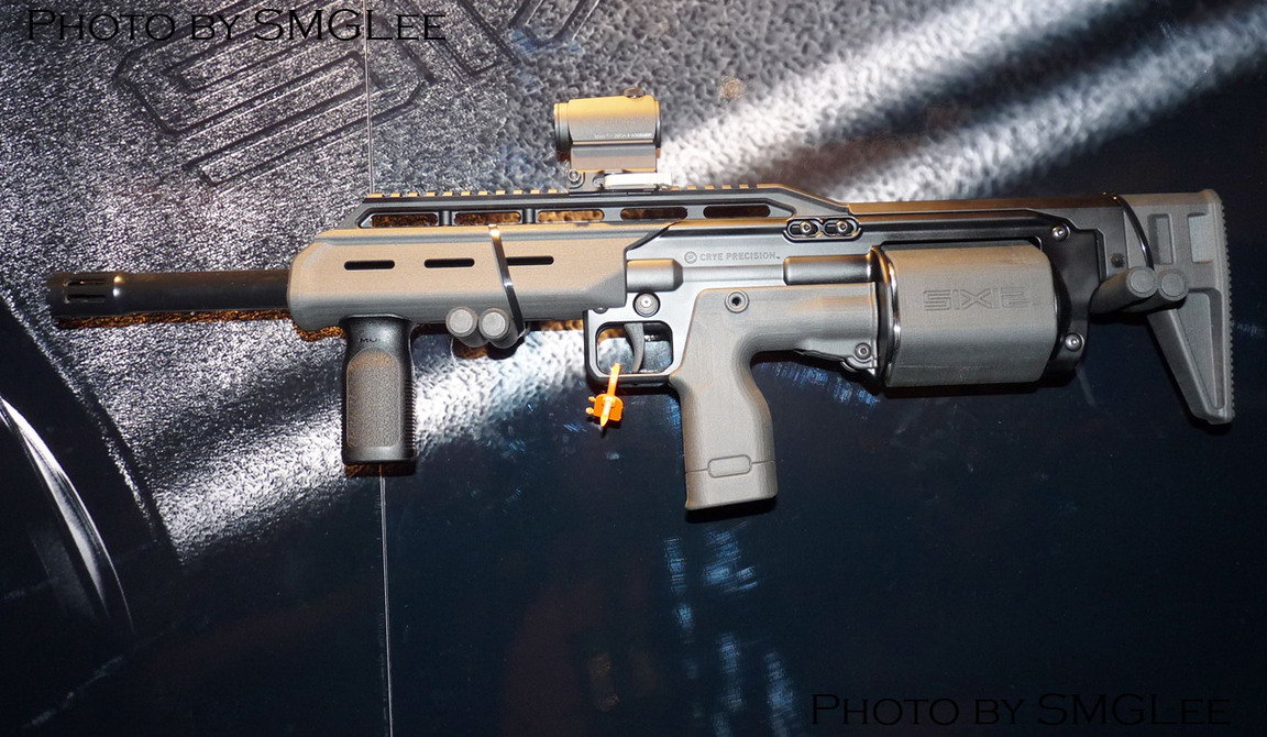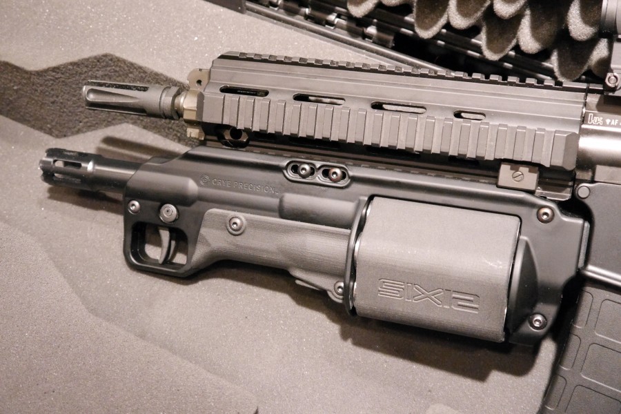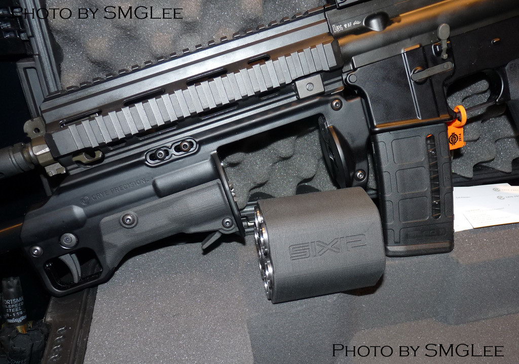 一直生产战斗套服、战术背心等装具的克莱精密公司(Crye Precision,国内通常称之为CP公司)在2014年涉足枪械业务,他们在2014年的SHOT Show上展出了一种转轮弹膛原理的霰弹枪,命名为“Six12”,就是“六连发12号”的意思。