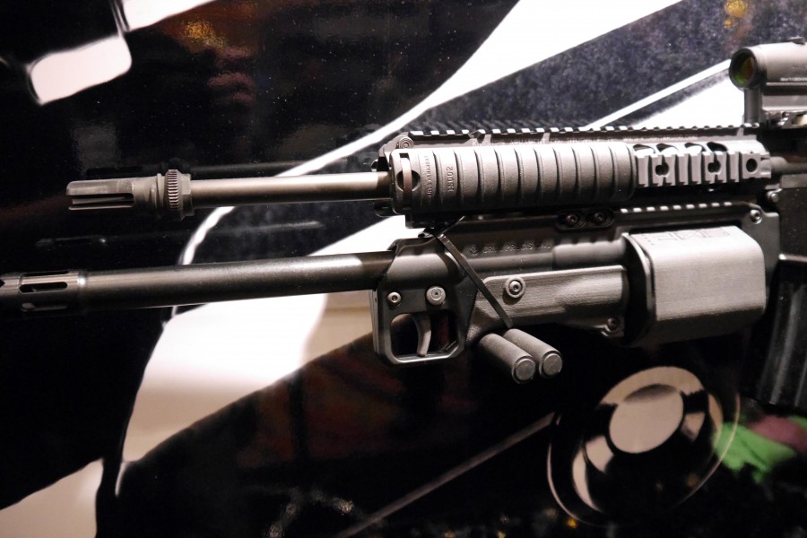 第二种形式也是下挂式武器,但枪管长18英寸,因为是非是NFA武器所以平民比较容易购买。只不过这样长的下挂式武器更适合挂在16英寸的卡宾枪上,而不是短枪管步枪上。