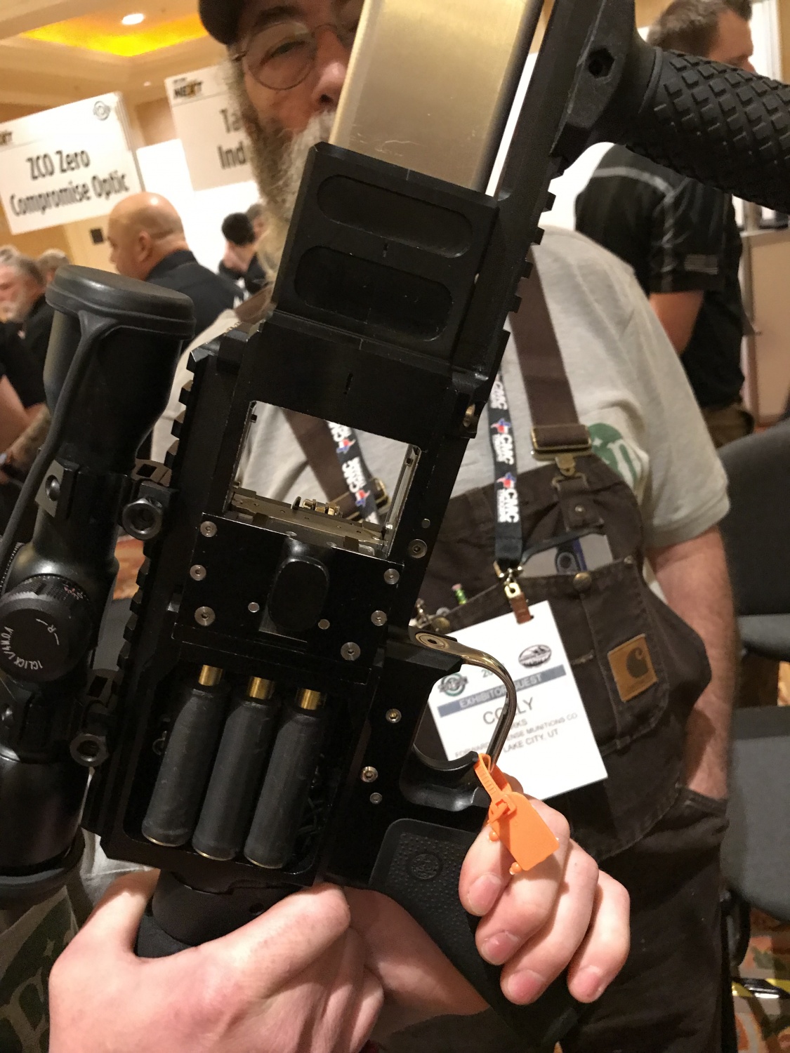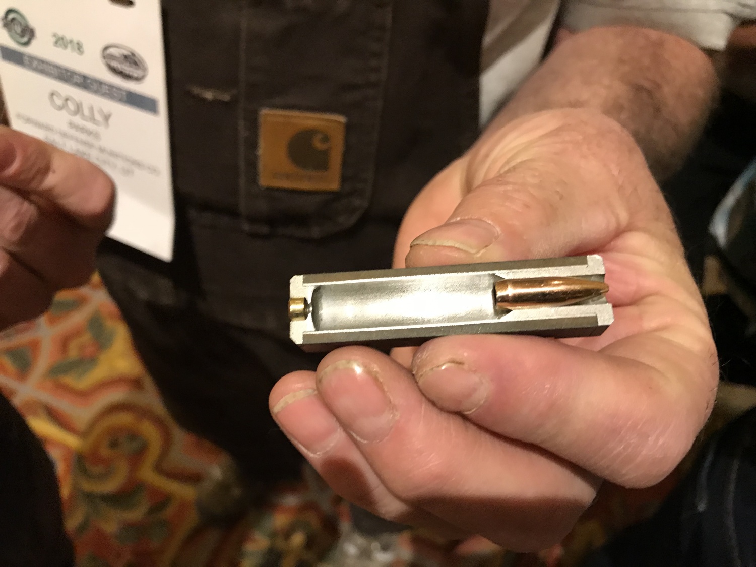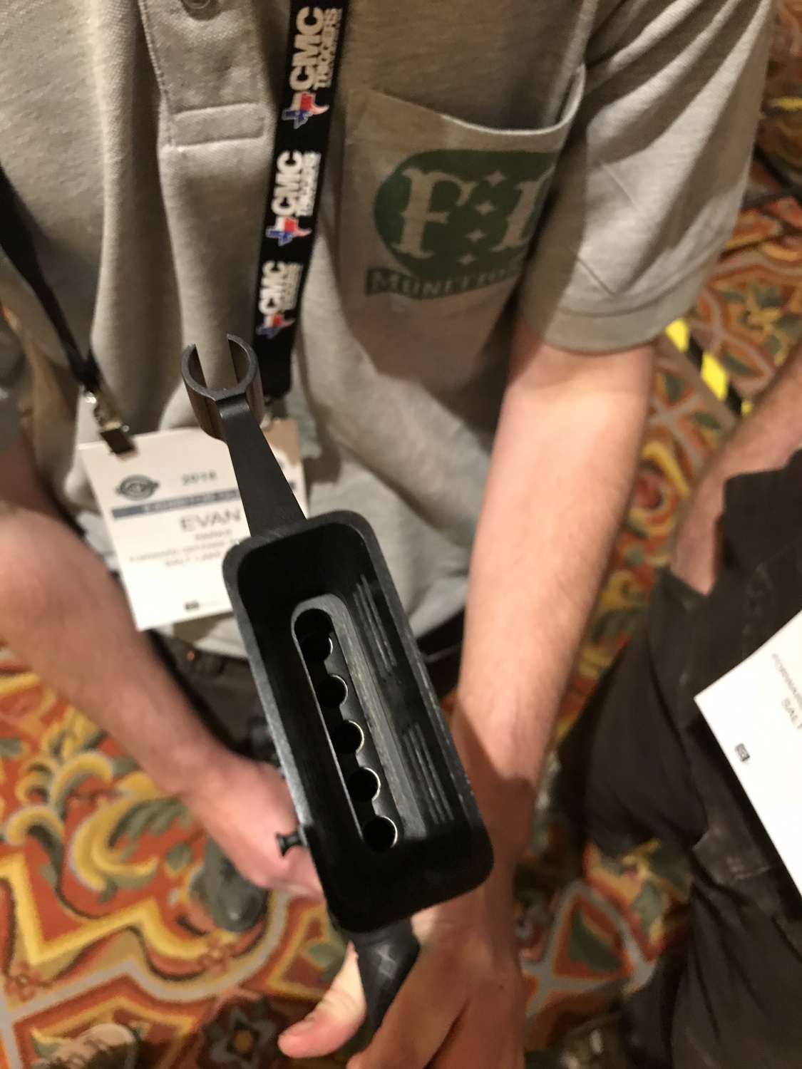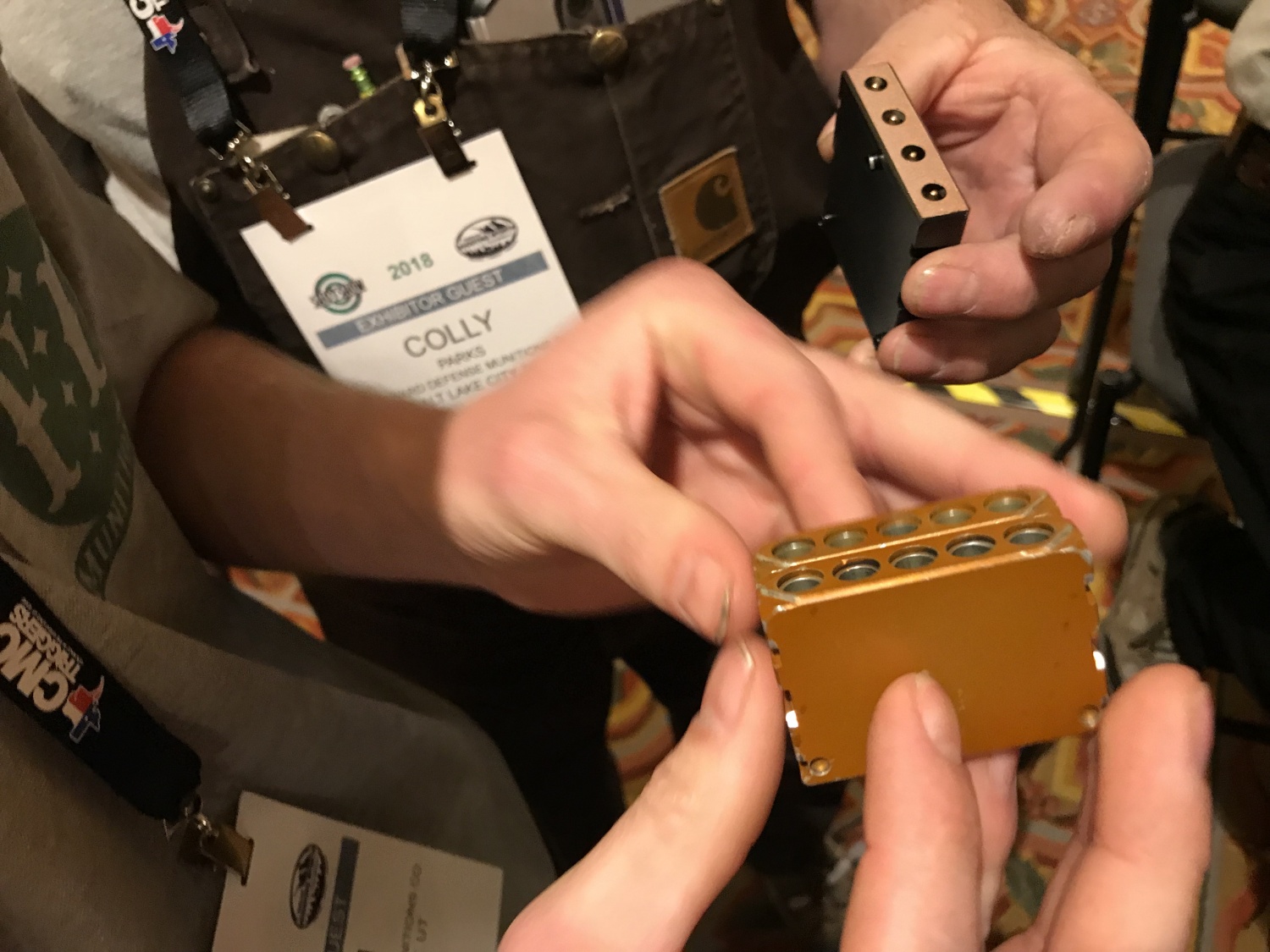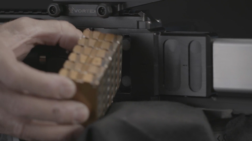 ![]() FDM公司在SHOT SHOW 2018上展出的装填块式弹药,就是5发一块的 |