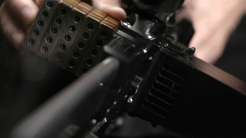 装填块式弹药是堆叠在一起压进枪内,从演示来看,一次可压入6块即共有30发弹