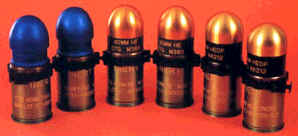 40×53mm榴弹,蓝色弹头的就是练习弹,撞到目标上只会粉碎不会爆炸