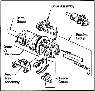 ![]() XM129榴弹发射器,枪管后面的就是凸轮鼓 |