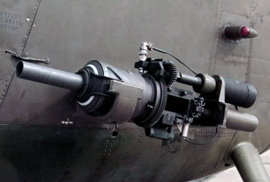 XM129是美国陆军的武器,但上图中这两门XM129据说是美国海军早年研制的一种名为XM149的双联榴弹发射器武器系统。XM149是为AP-2H武装侦察机试验的一种武器。