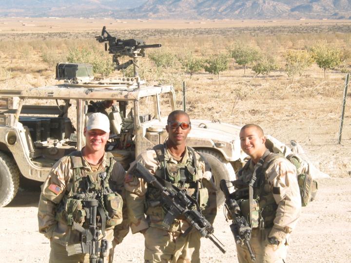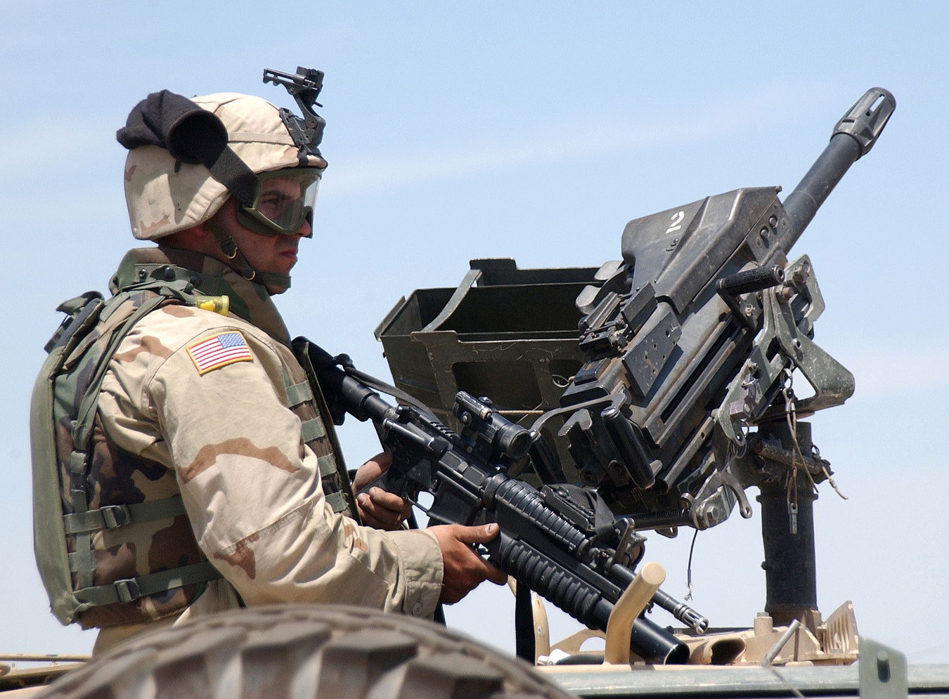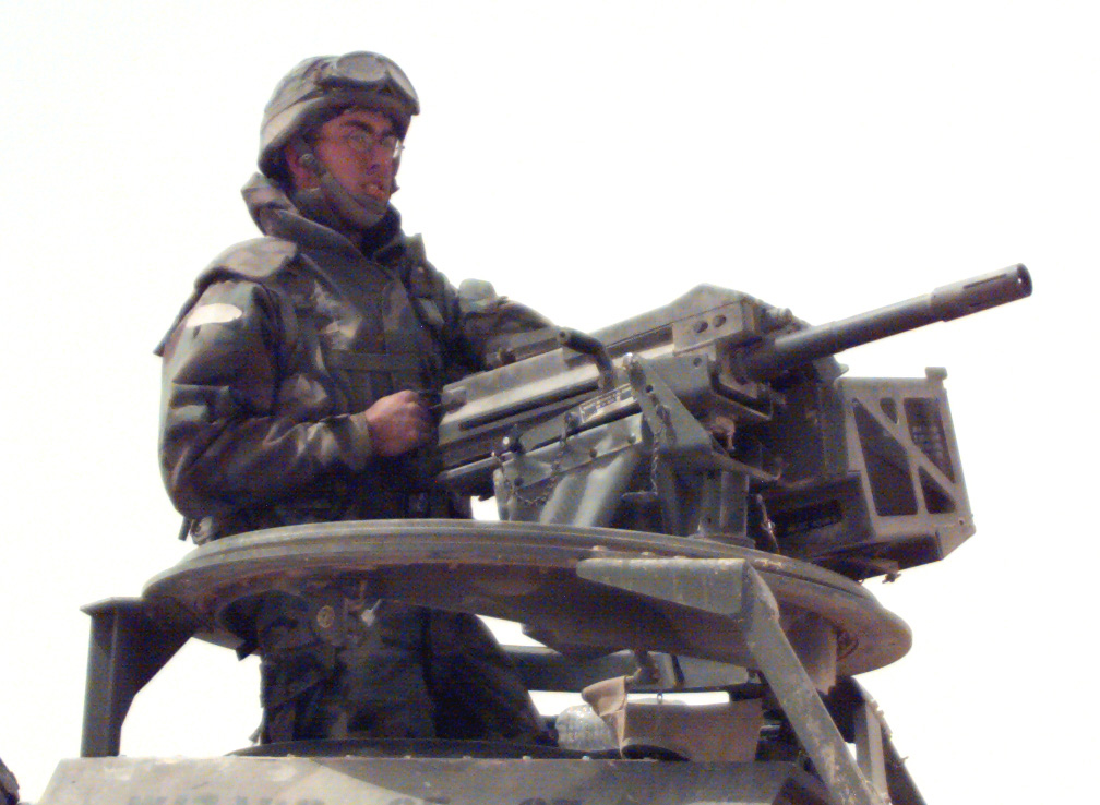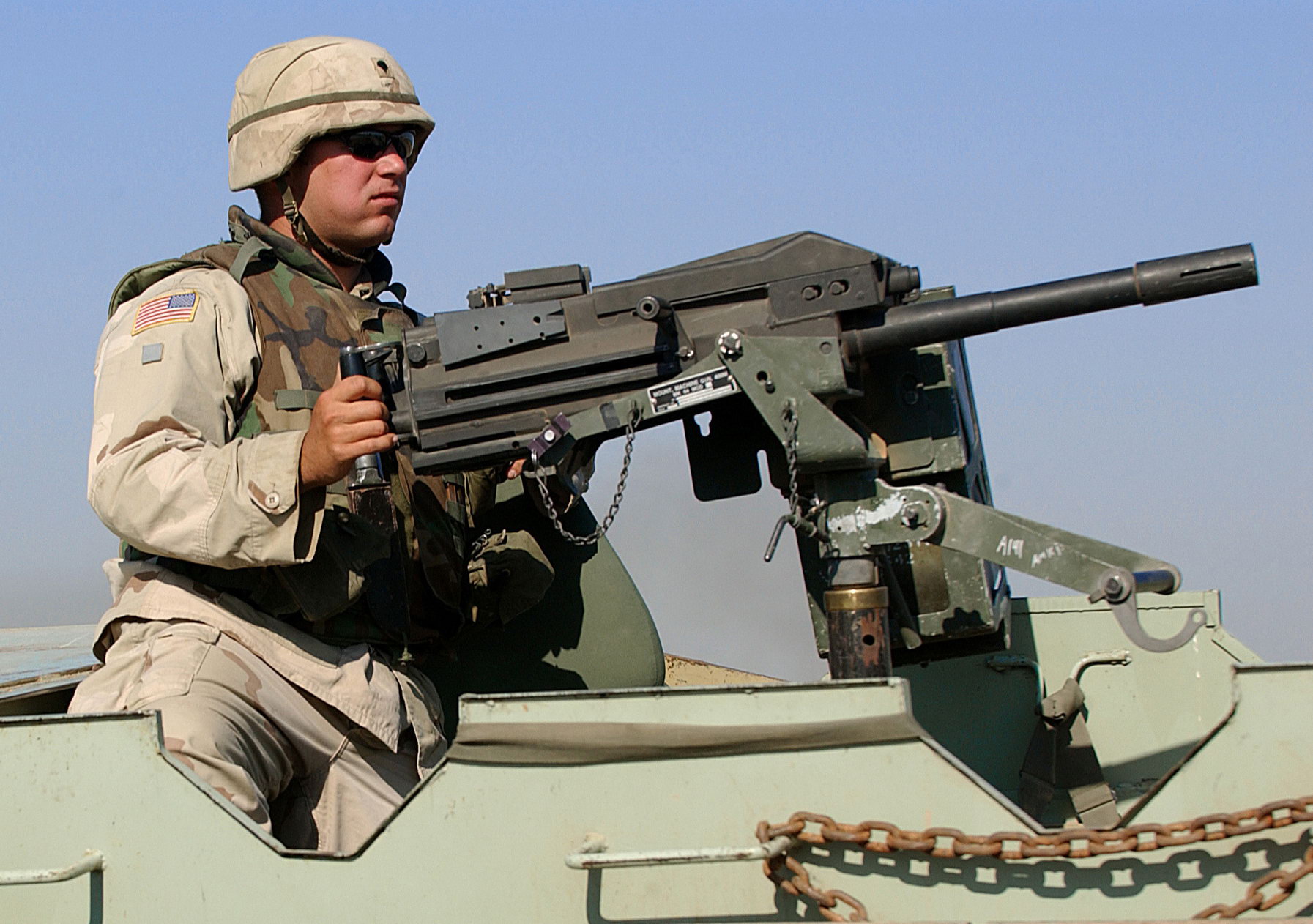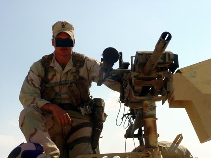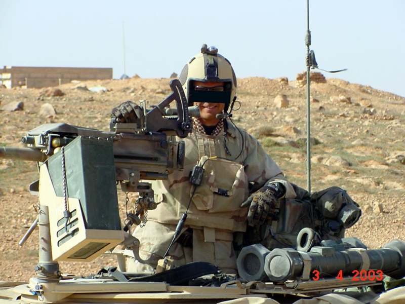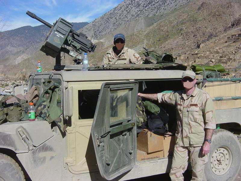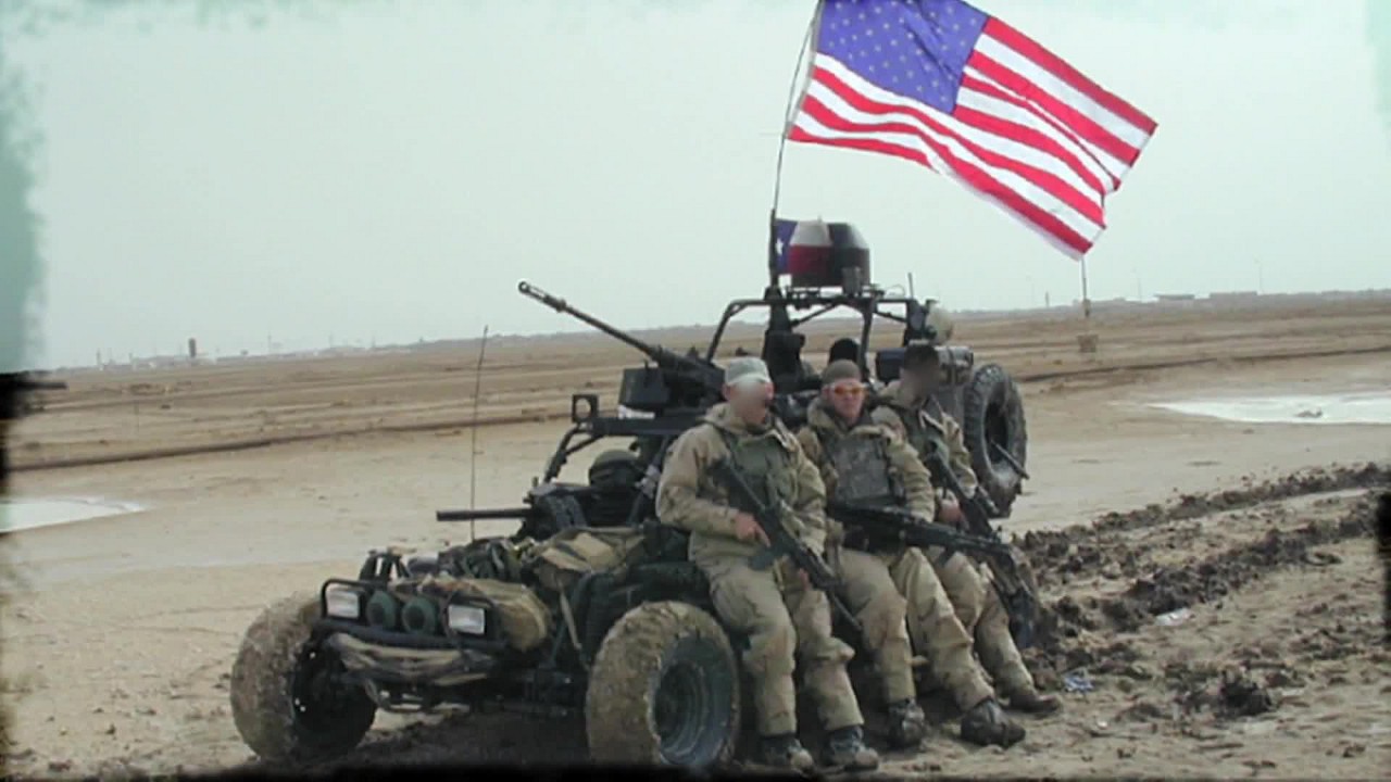 海豹狙击手克里斯·凯尔在伊拉克期间与DPV的合影,车顶上有M2HB,副驾驶座前有Mk19