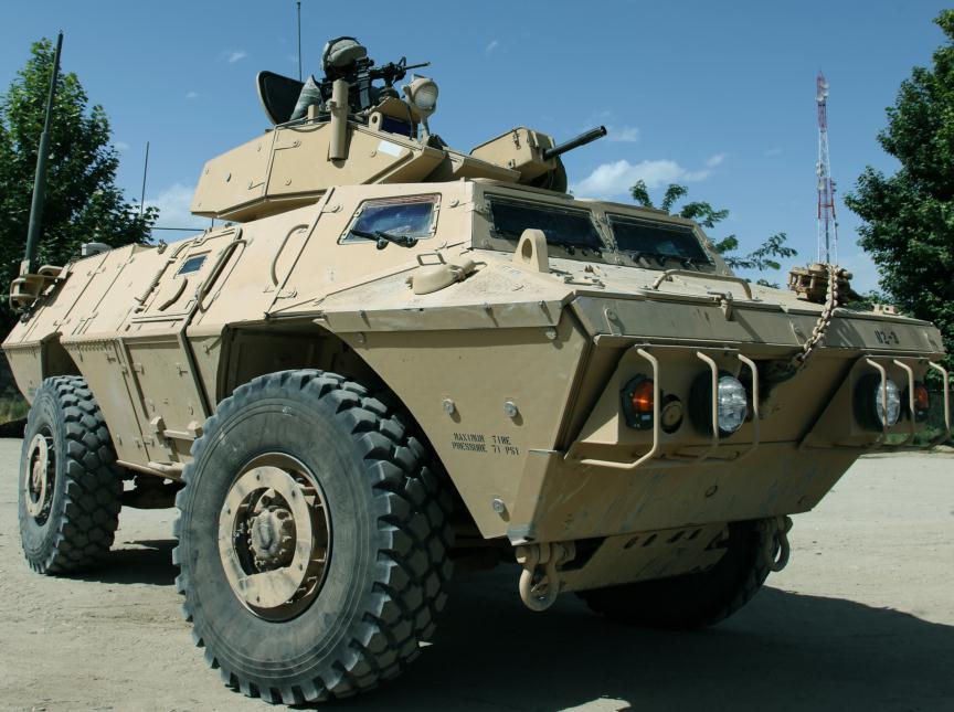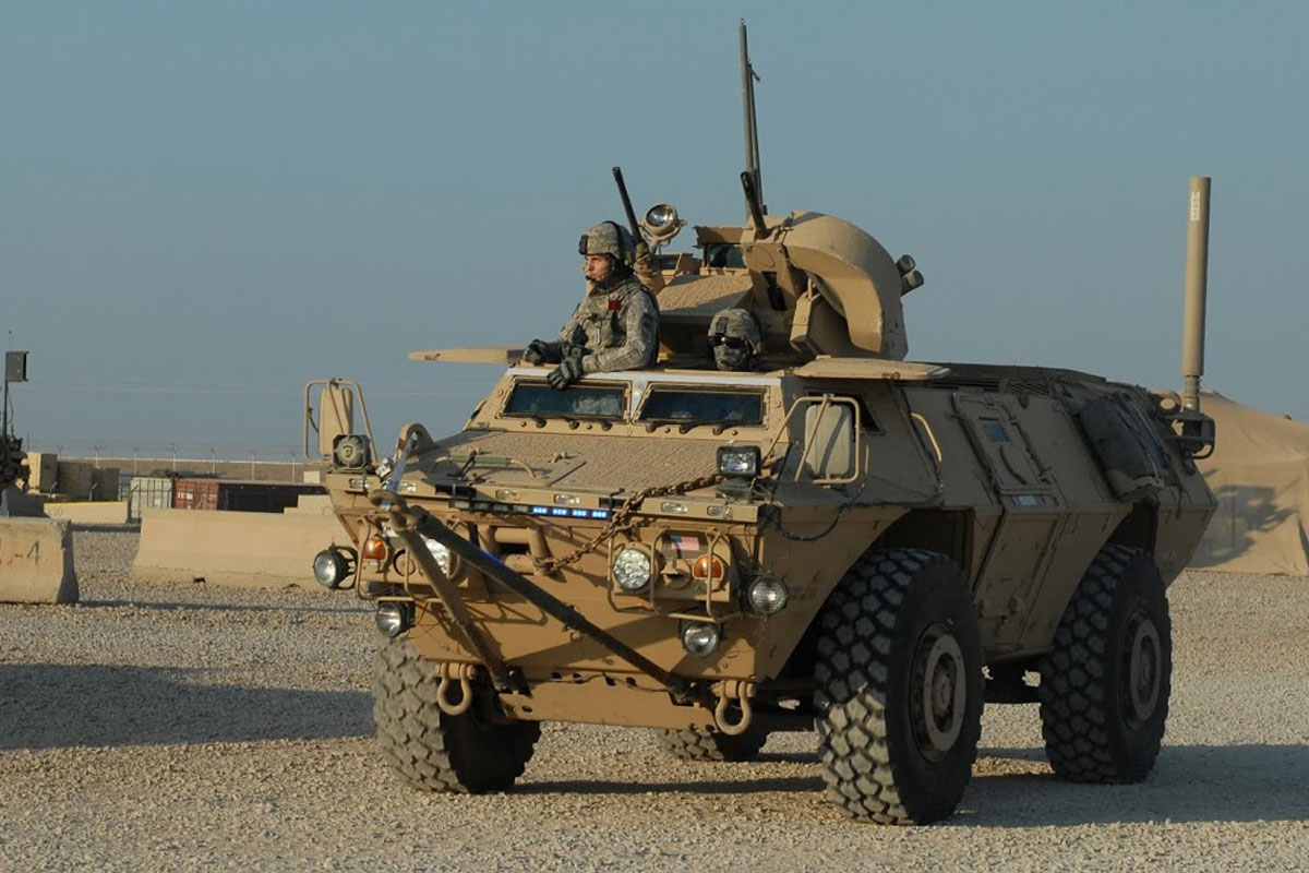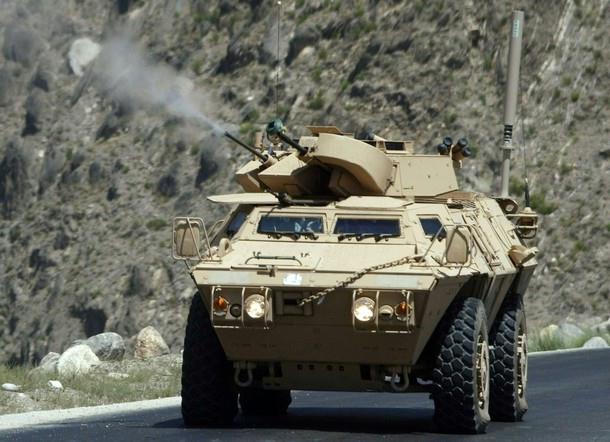 以一挺M2HB和一具Mk19 MOD3为炮塔武器的M1117装甲车