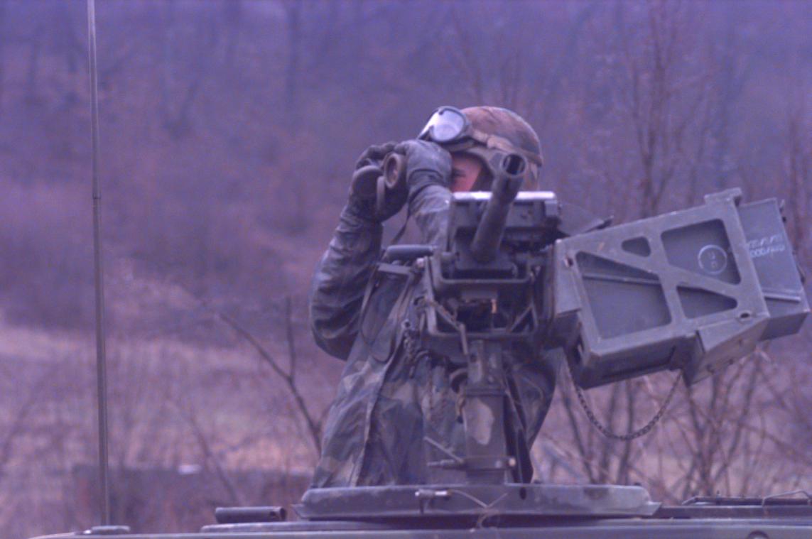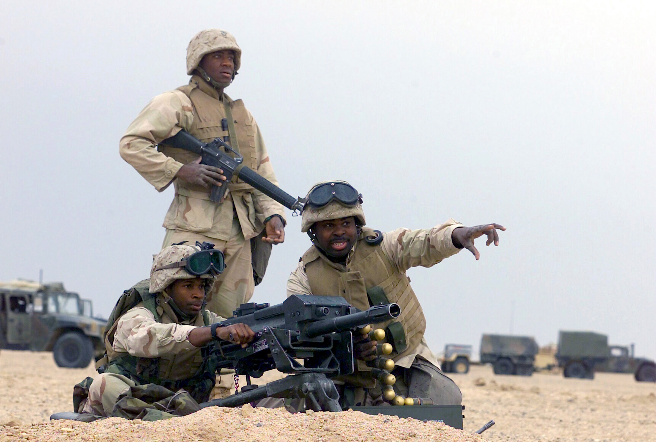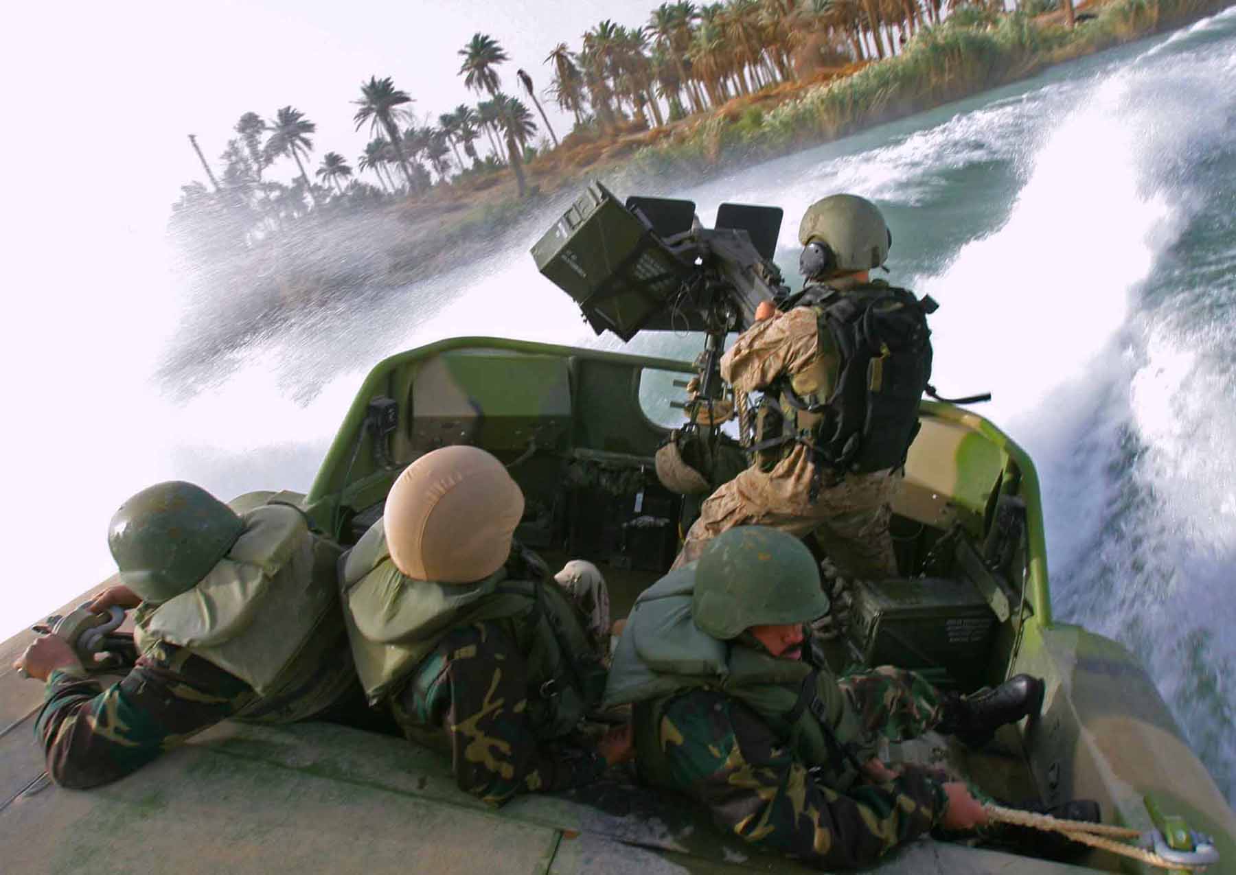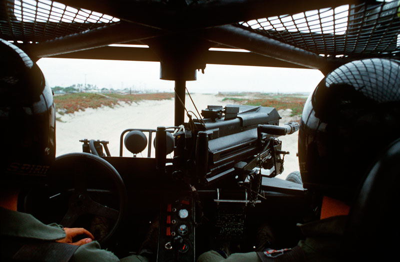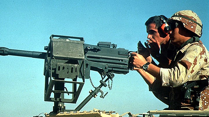 这是1991年海湾战争中第一支进入科威特的地面部队:一支分乘4辆DPV的12人海豹突击队,排头车上装有Mk19